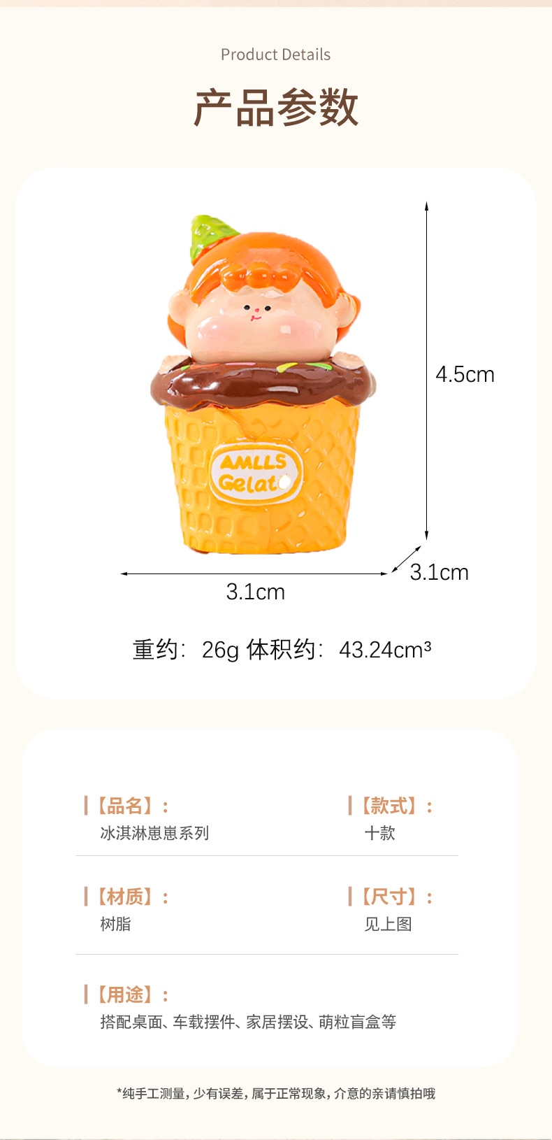 아이스크림 아기 귀여운 인형 수지 공예 데스크탑 작은 장식품 거실 장식 작은 장식품 라이브 블라인드 가방