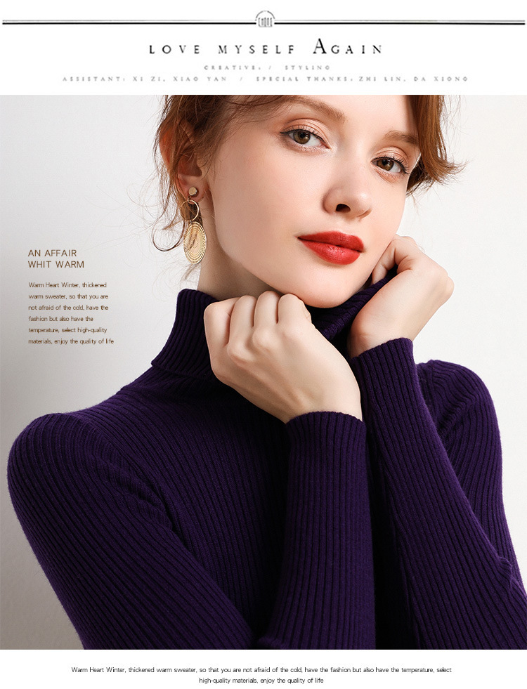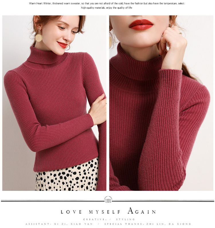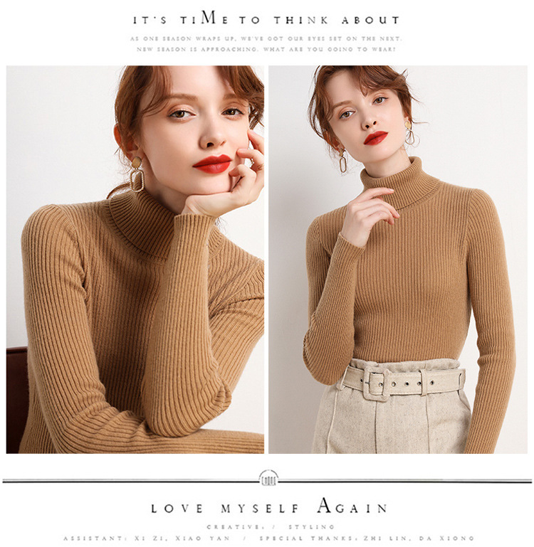 여성용 터틀넥 스웨터, 슬림핏, 새로운 가을 겨울 스타일, 두껍고 다재다능한 풀오버, 짧은 긴팔 타이트 니트 바닥 셔츠스토어 가기
