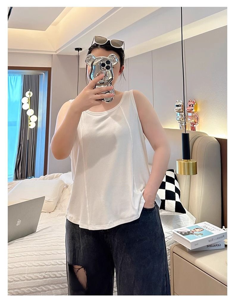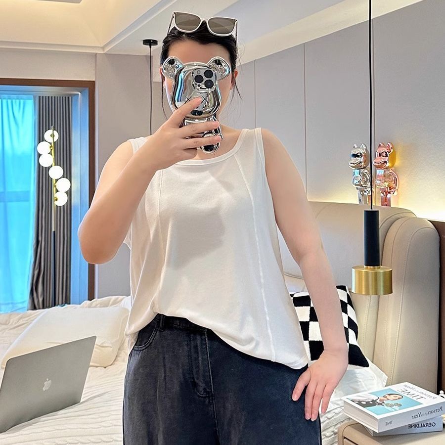 통통녀 플러스 사이즈 여성의 150.00kg 간단한 단색 탄성 느슨한 작은 조끼 봄과 여름 새로운 육체 덮음 슬리밍