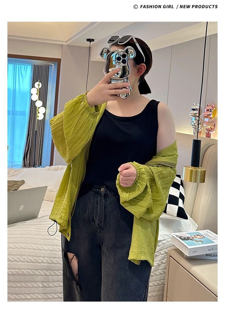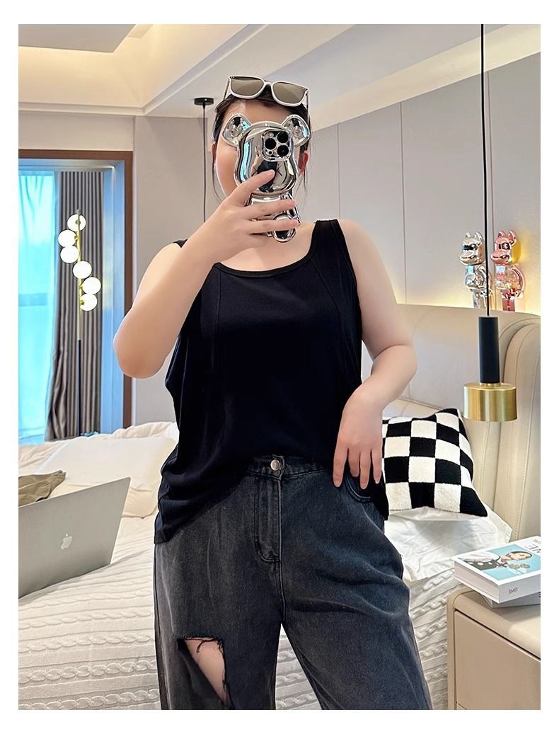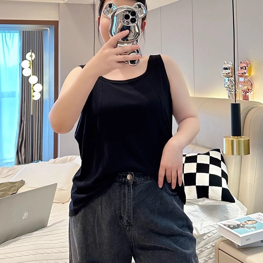 통통녀 플러스 사이즈 여성의 150.00kg 간단한 단색 탄성 느슨한 작은 조끼 봄과 여름 새로운 육체 덮음 슬리밍스토어 가기