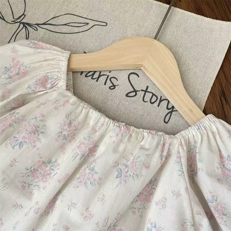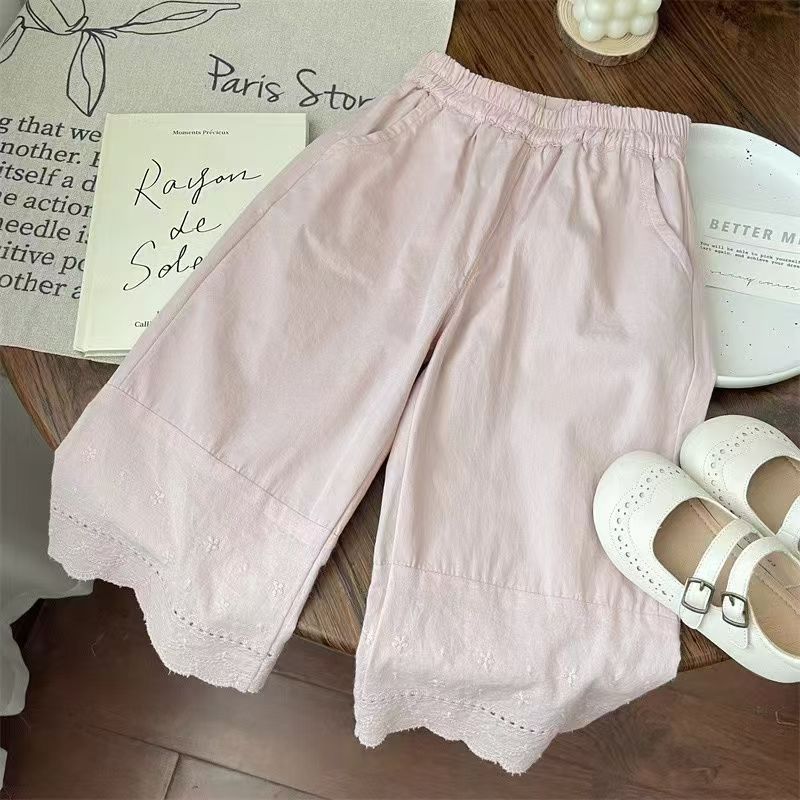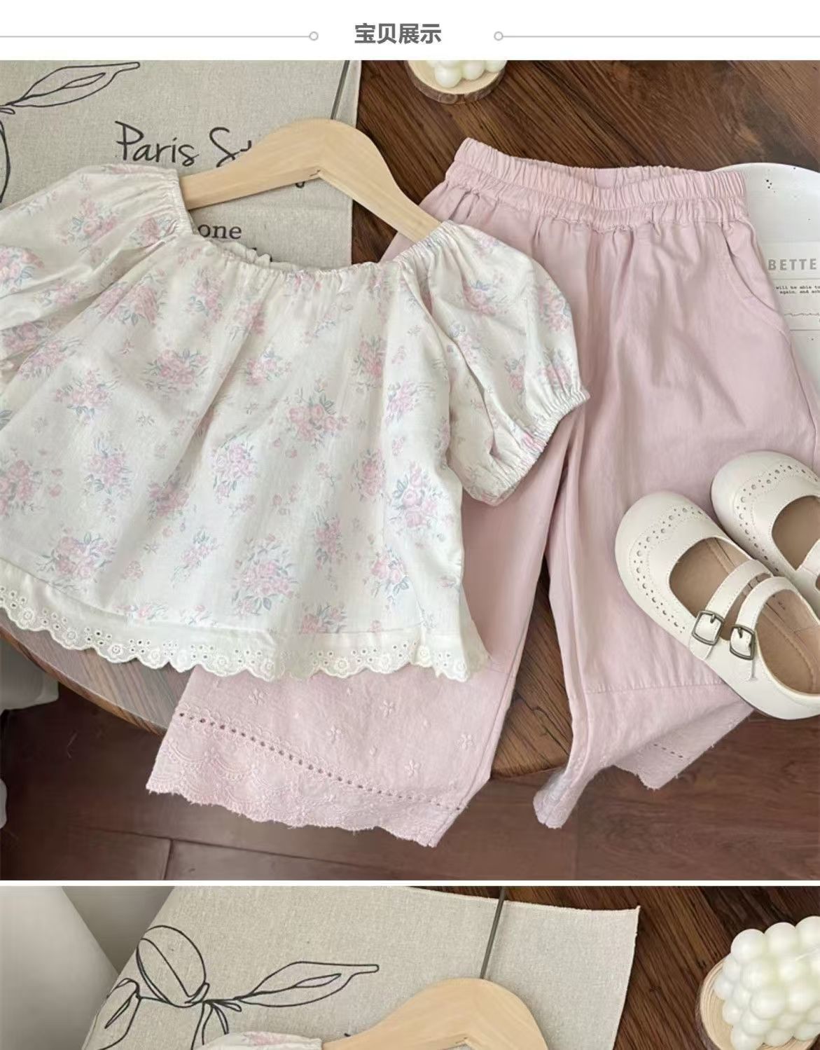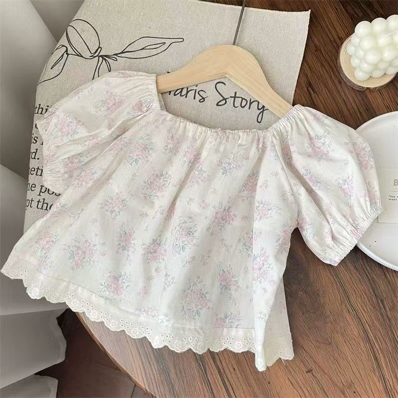 여름 세트 모리 소녀의 아기 핑크 레이스 스트레이트 팬츠 플로럴 탑 한국식 어린이 투피스 세트스토어 가기