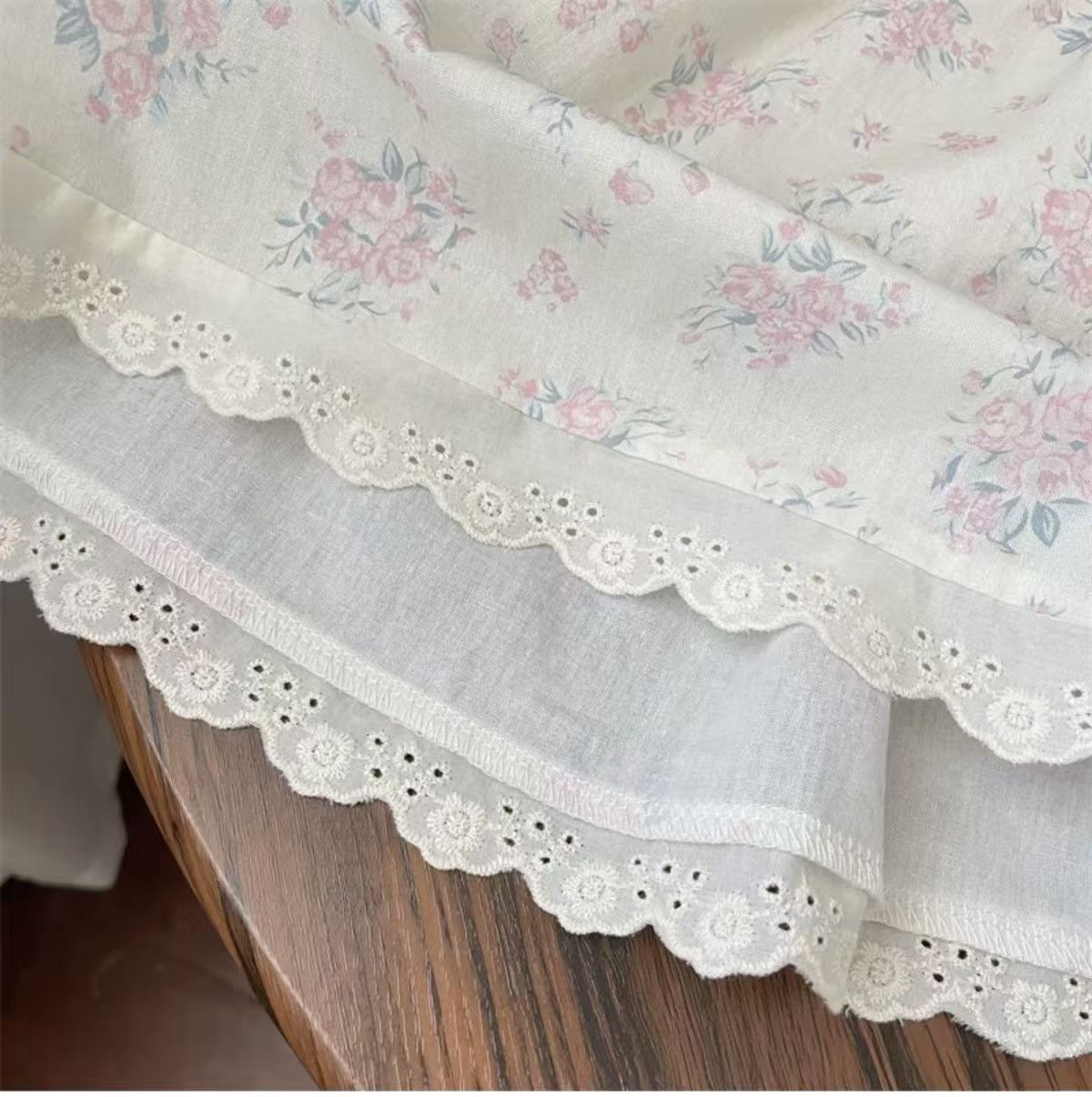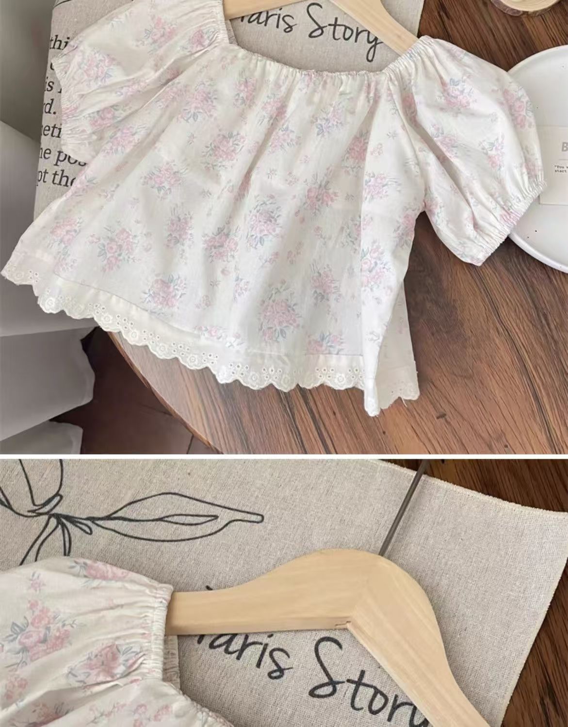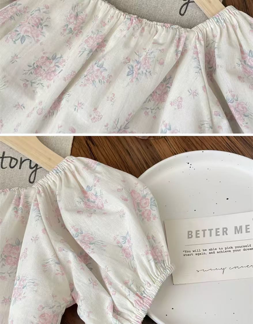 여름 세트 모리 소녀의 아기 핑크 레이스 스트레이트 팬츠 플로럴 탑 한국식 어린이 투피스 세트스토어 가기