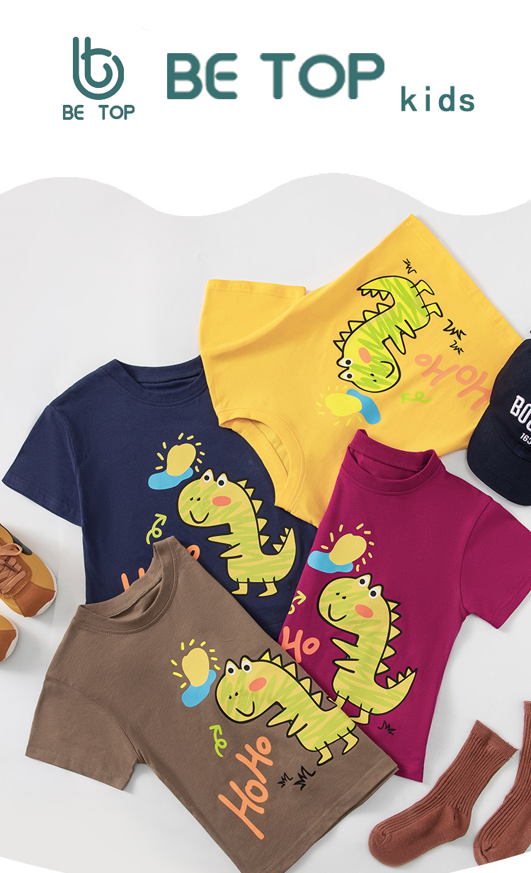 Betop 한국 아동복 어린이 반팔 티셔츠 여름 공룡 소년 아기 느슨한 국경 반 소매 의류 도매스토어 가기