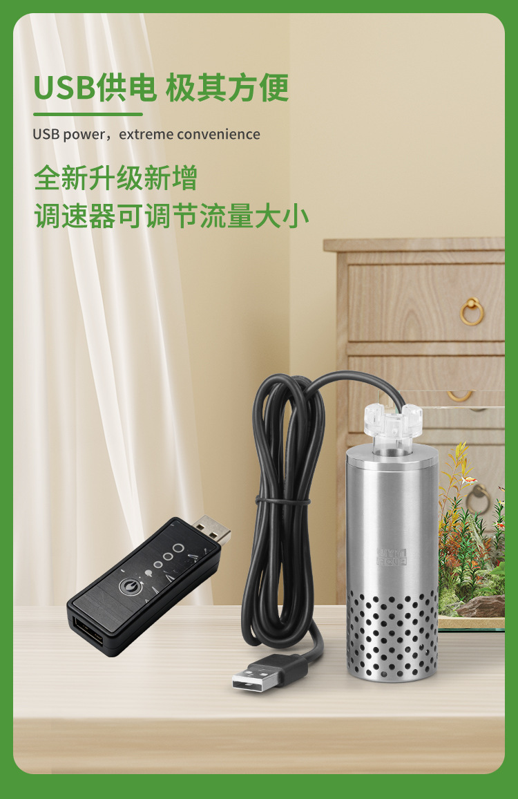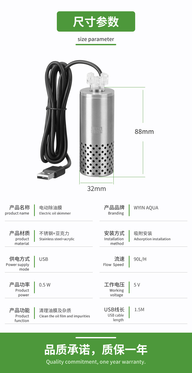 WYIN 수족관 전기 오일 필름 제거제 USB 빨판 스테인레스 스틸 수생 식물 수조 필터 청소 오일 필름 프로세서