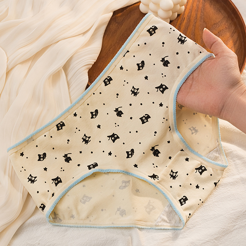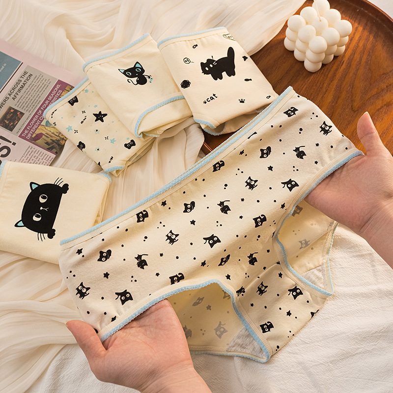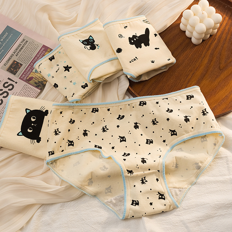 고등학생을위한 새로운 귀여운 작은 검은 고양이 속옷 여성의 순수한 면화 학생 소녀 브리프 일본식 만화 속옷스토어 가기