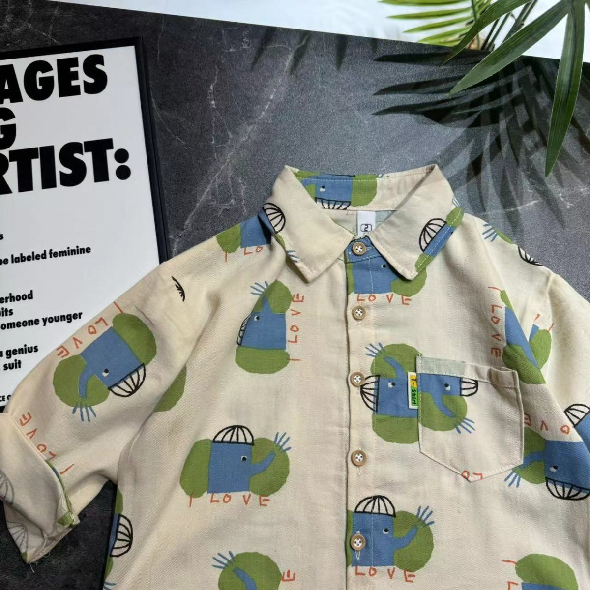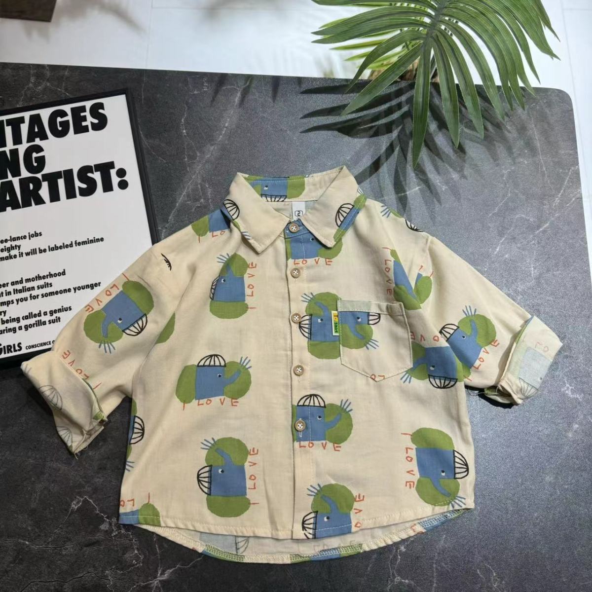2025 새로운 한국어 스타일 봄, 가을 만화 아기 코끼리 어린이 긴팔 셔츠 캐주얼 탑 한국어 스타일 만화 아기 코끼리스토어 가기