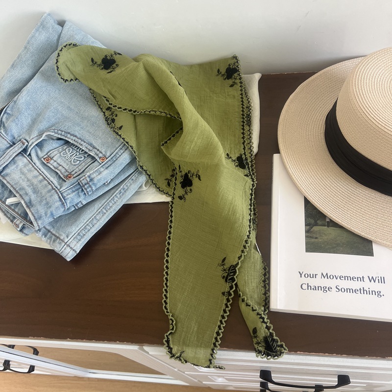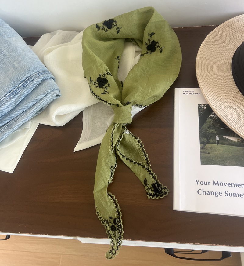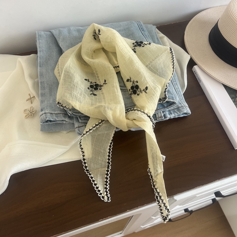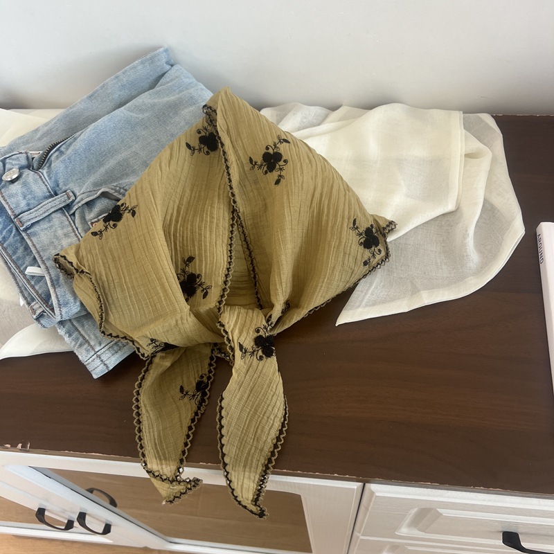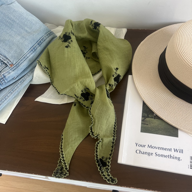 프랑스 스타일 빈티지 3 차원 벨벳 플라워 트라이앵글 스카프 올 매치 실크 스카프 여성의 얇은 코튼 및 리넨 레이스 스카프