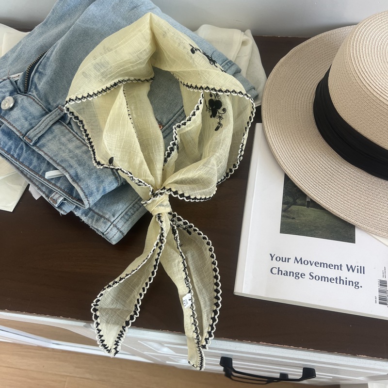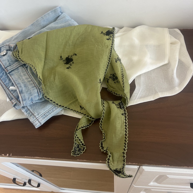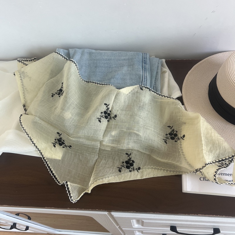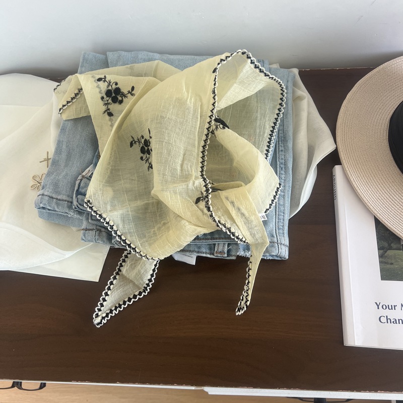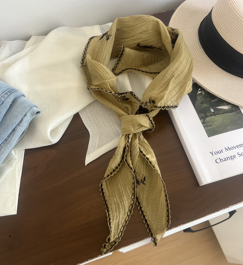 프랑스 스타일 빈티지 3 차원 벨벳 플라워 트라이앵글 스카프 올 매치 실크 스카프 여성의 얇은 코튼 및 리넨 레이스 스카프