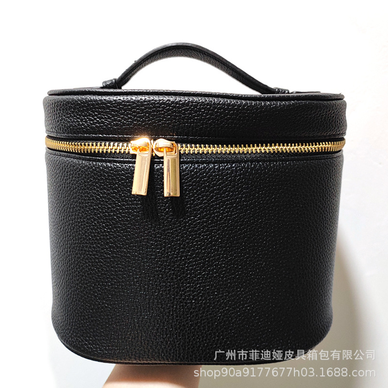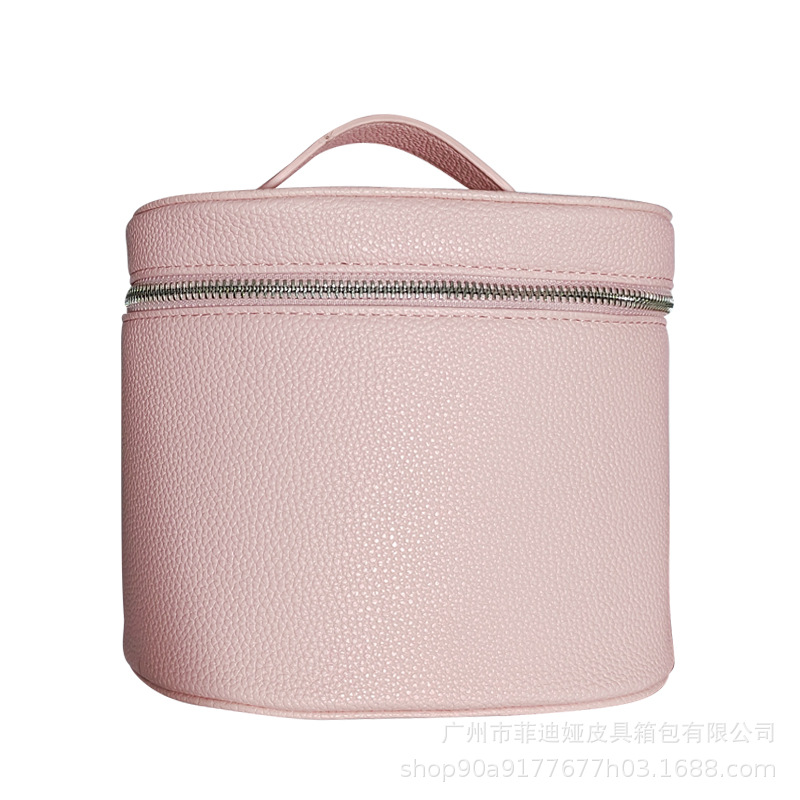 2025 새로운 패션 라운드 핸드 화장품 가방 솔리드 컬러 PU 버킷 백 스킨 케어 화장품 여성용 스토리지 백