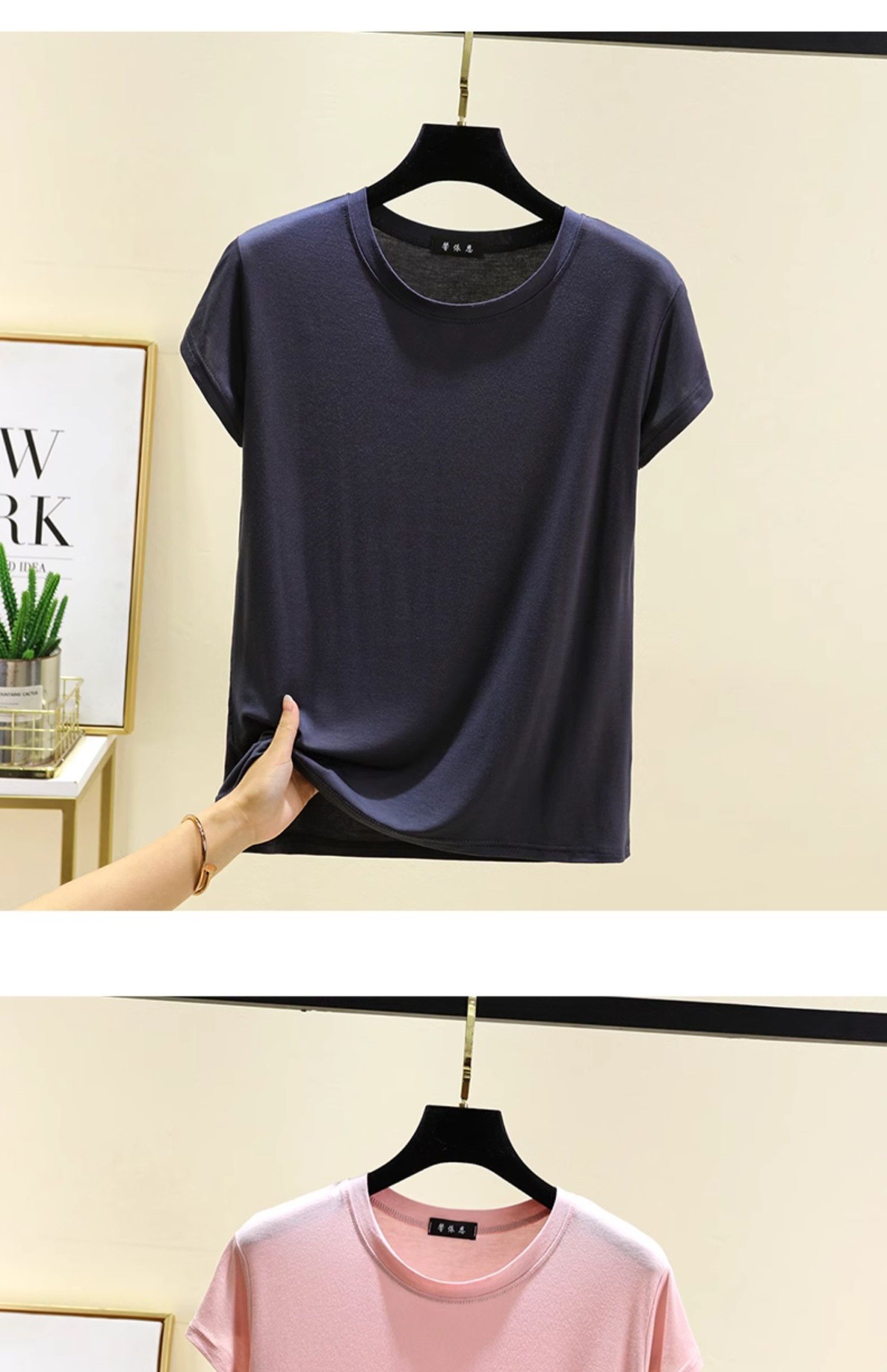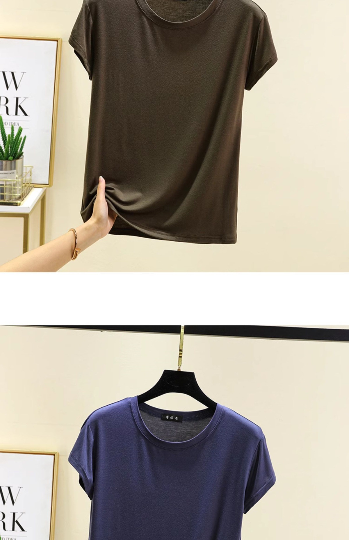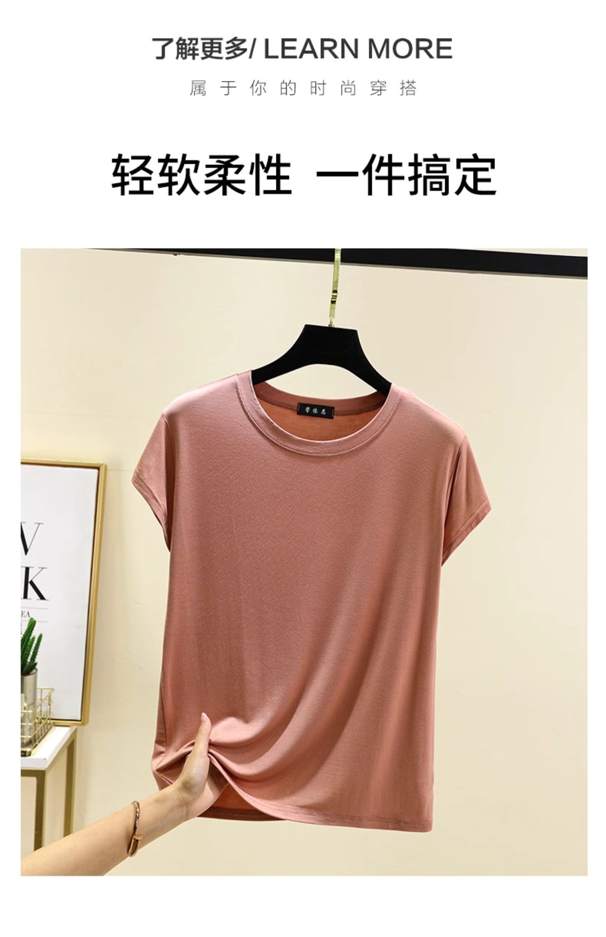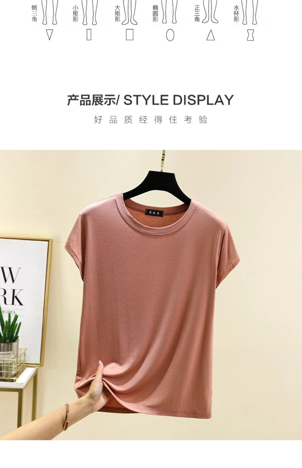 모달 라운드 넥 팻 mm 반팔 티셔츠 여성 여름 루즈 대형 반팔 셔츠 다용도 솔리드 컬러 아우터 탑스토어 가기