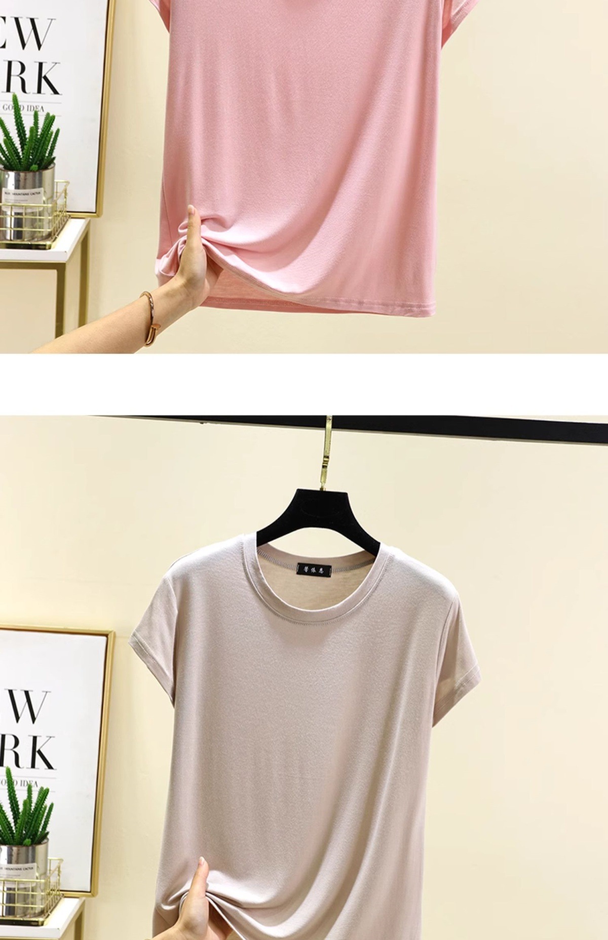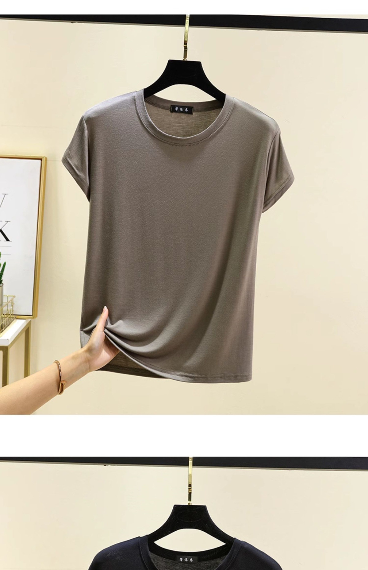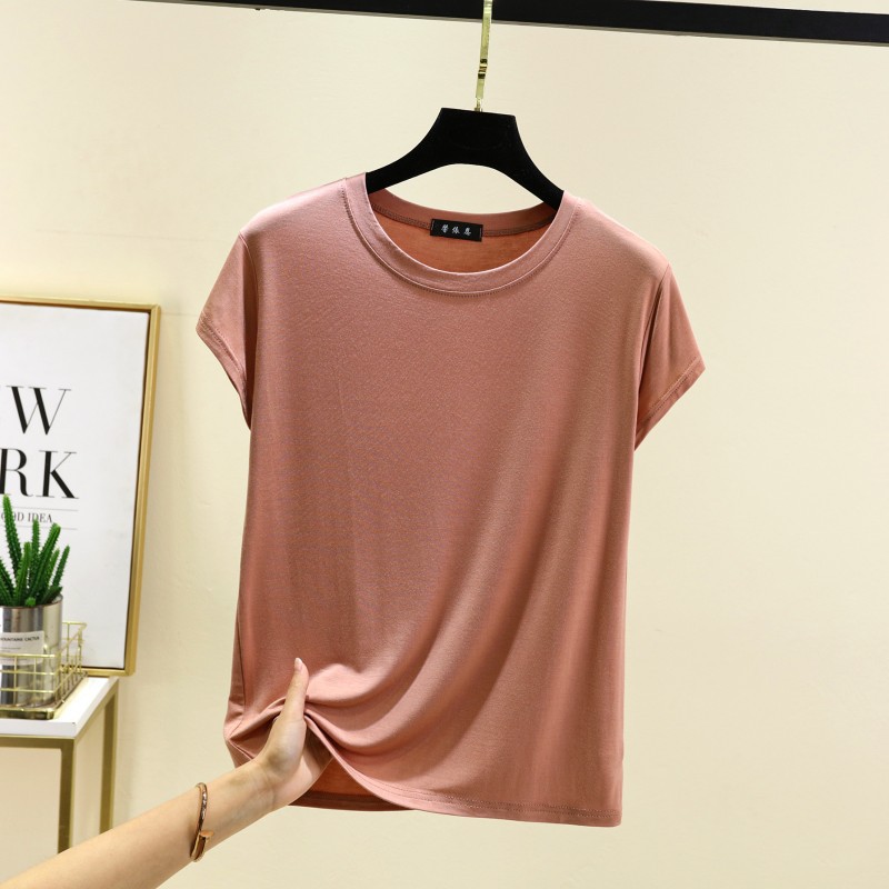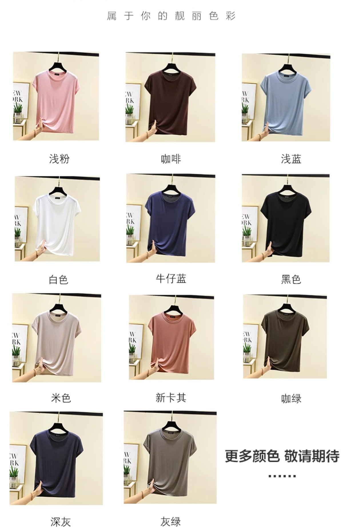 모달 라운드 넥 팻 mm 반팔 티셔츠 여성 여름 루즈 대형 반팔 셔츠 다용도 솔리드 컬러 아우터 탑스토어 가기