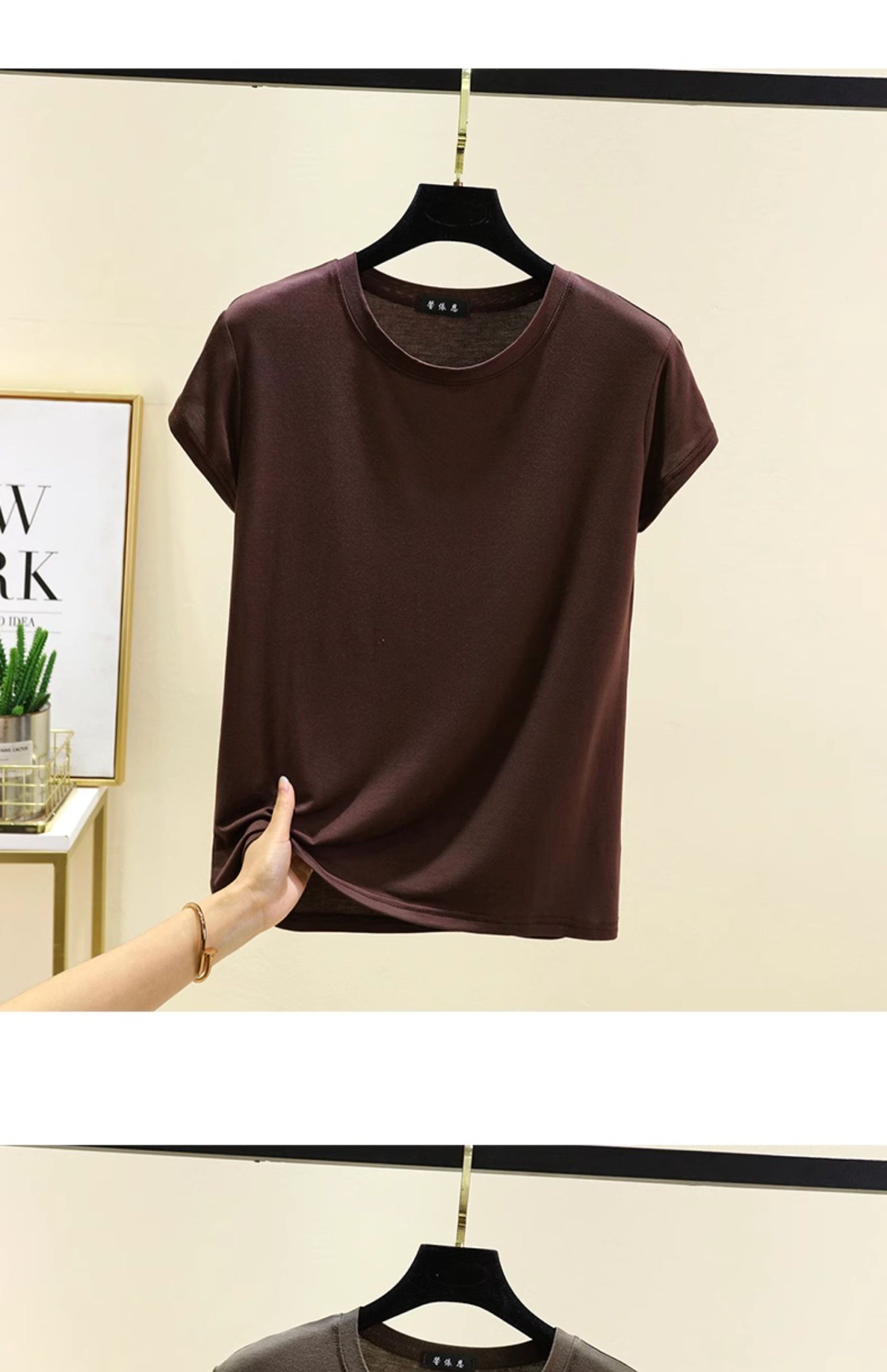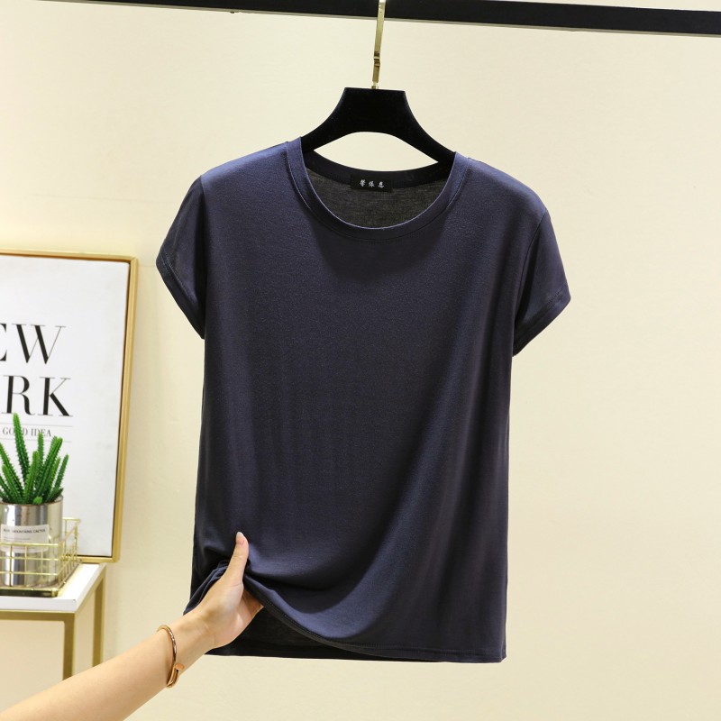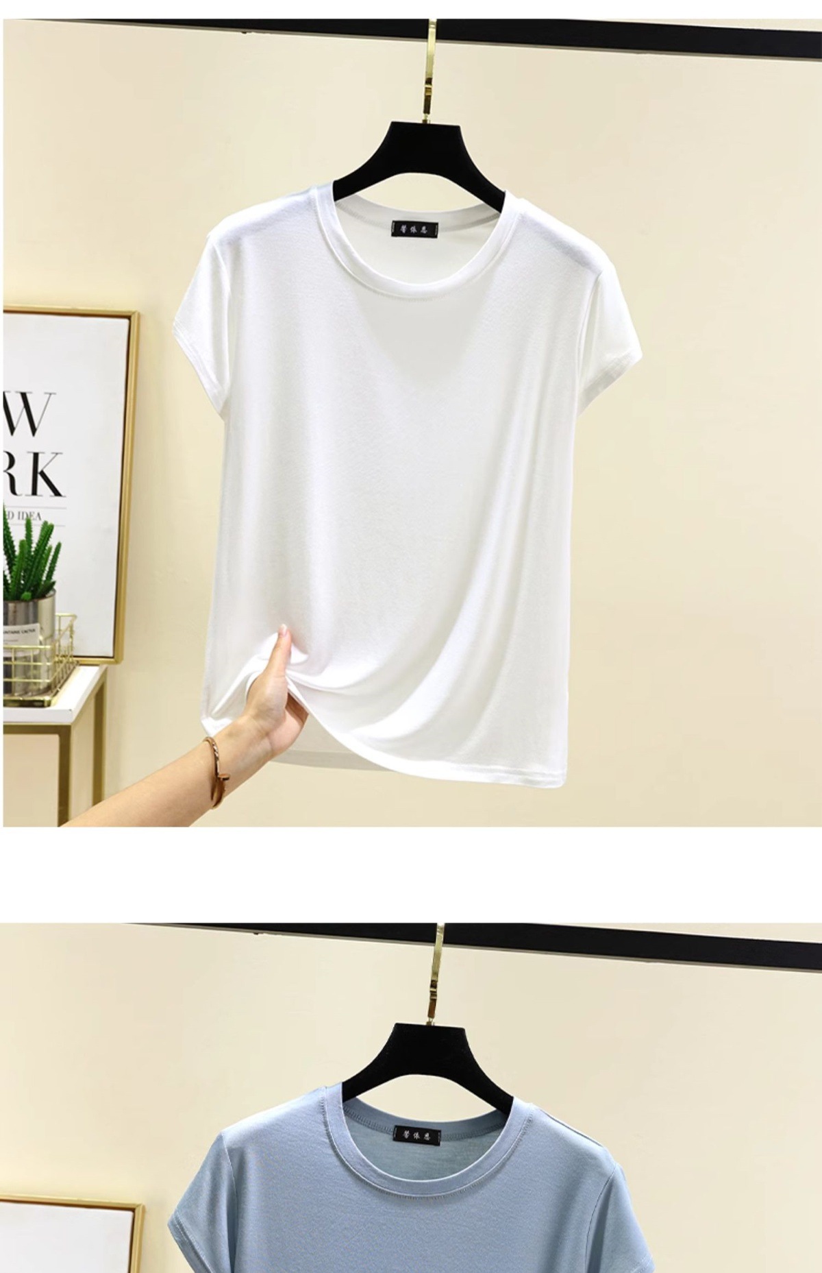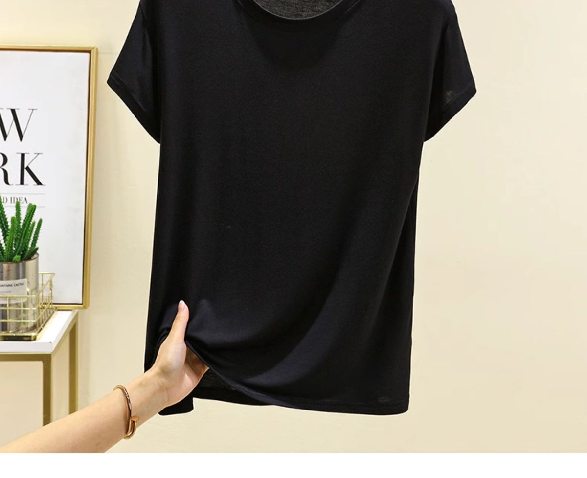 모달 라운드 넥 팻 mm 반팔 티셔츠 여성 여름 루즈 대형 반팔 셔츠 다용도 솔리드 컬러 아우터 탑스토어 가기