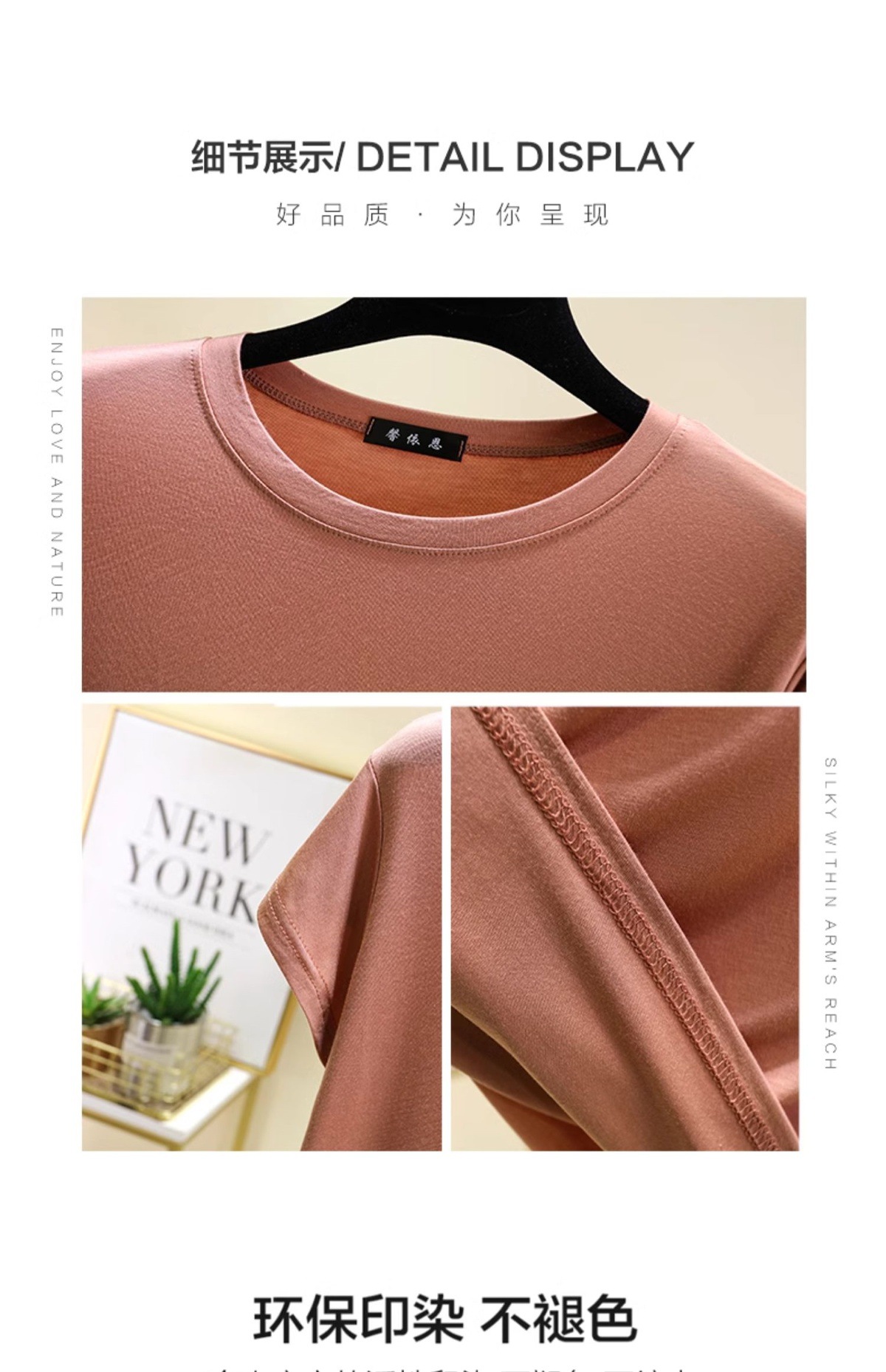 모달 라운드 넥 팻 mm 반팔 티셔츠 여성 여름 루즈 대형 반팔 셔츠 다용도 솔리드 컬러 아우터 탑