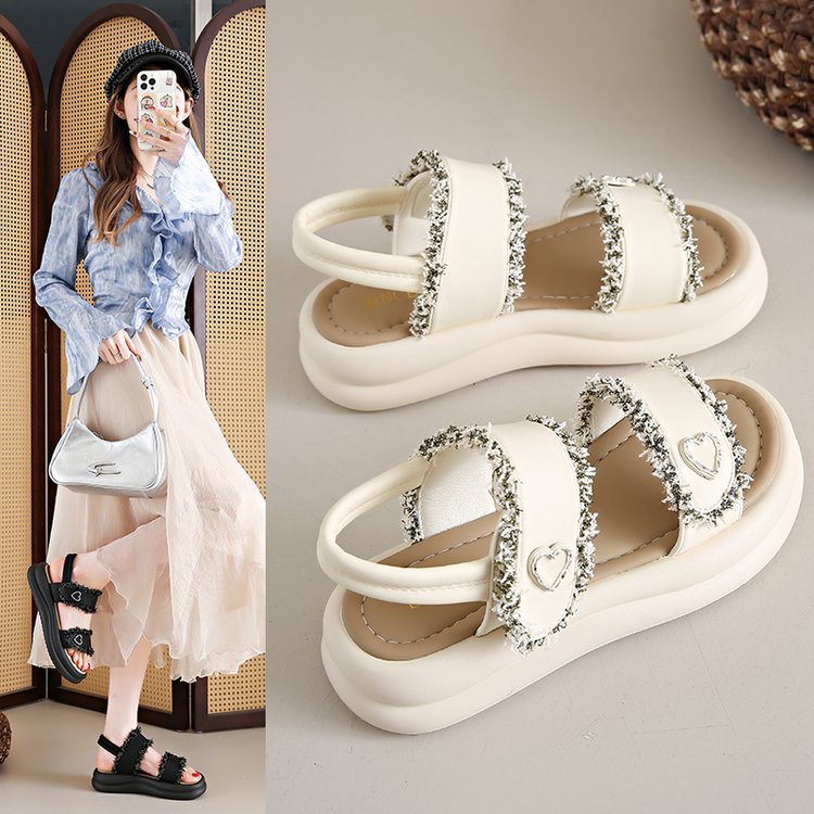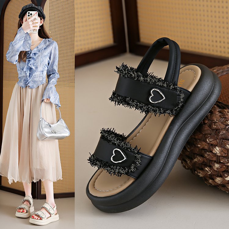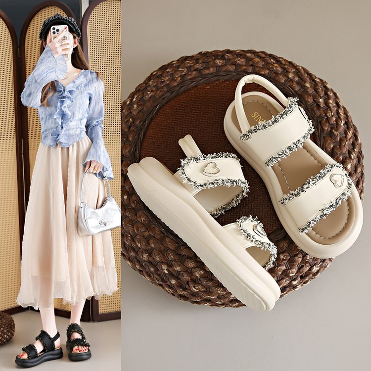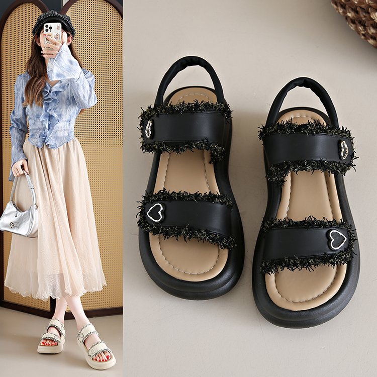 여성 플랫폼 샌들 2025 새로운 스타일 샤넬 스타일 플랫폼 버클 오픈 발가락 유행 플러스 사이즈 샌들스토어 가기