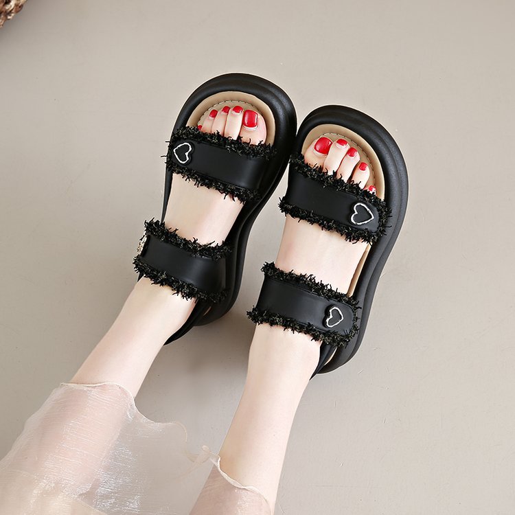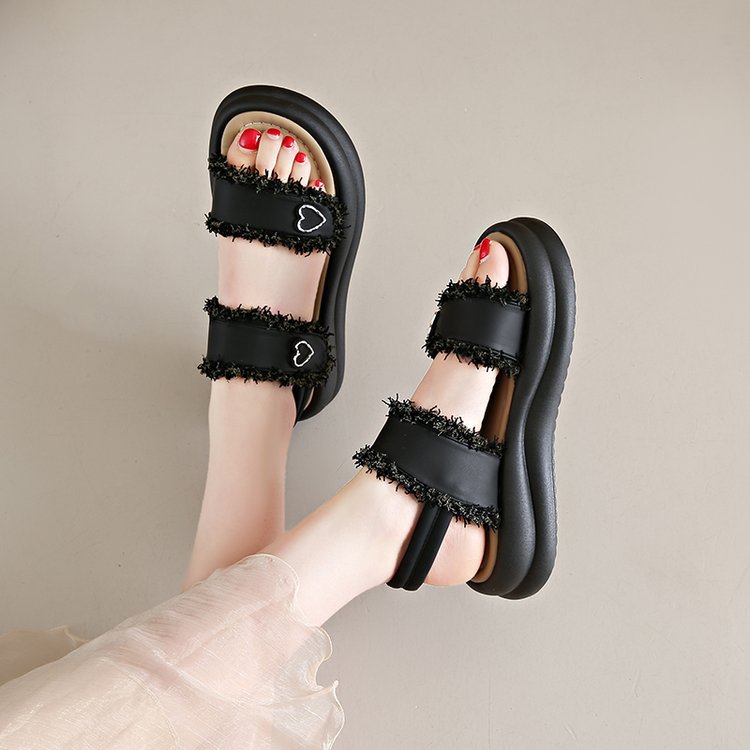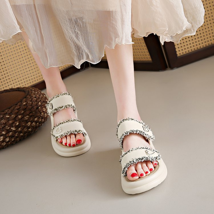 여성 플랫폼 샌들 2025 새로운 스타일 샤넬 스타일 플랫폼 버클 오픈 발가락 유행 플러스 사이즈 샌들
