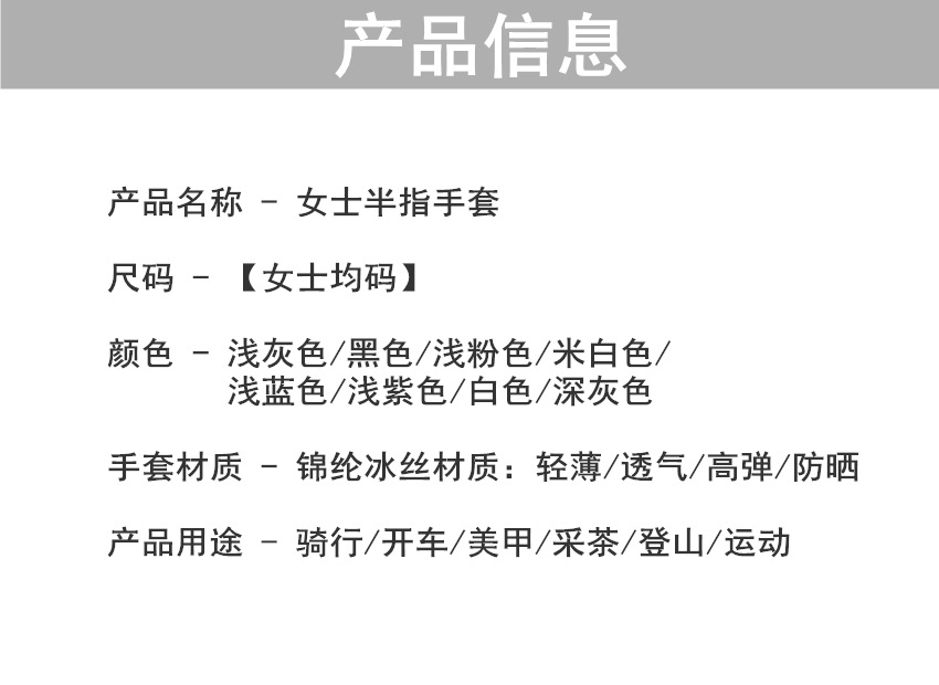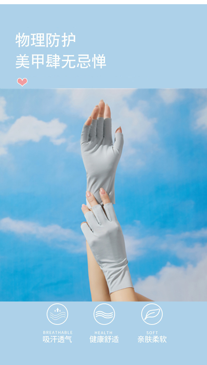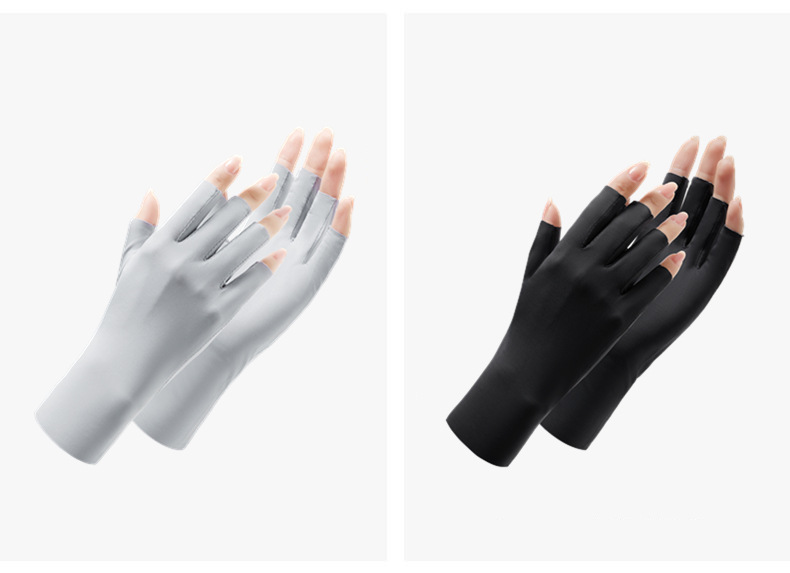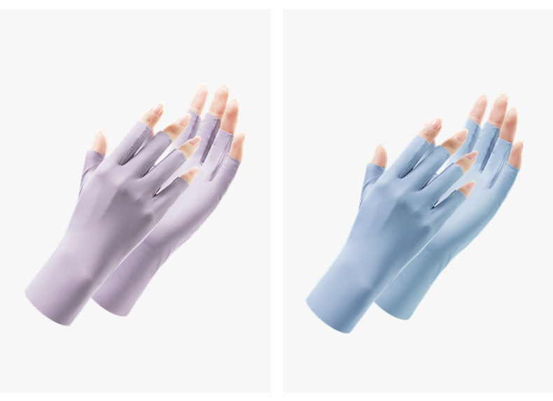 여름 아이스 실크 태양 보호 손가락 장갑 남성과 여성의 UV 보호 야외 차 따기 네일 아트 운전 경량 승마
