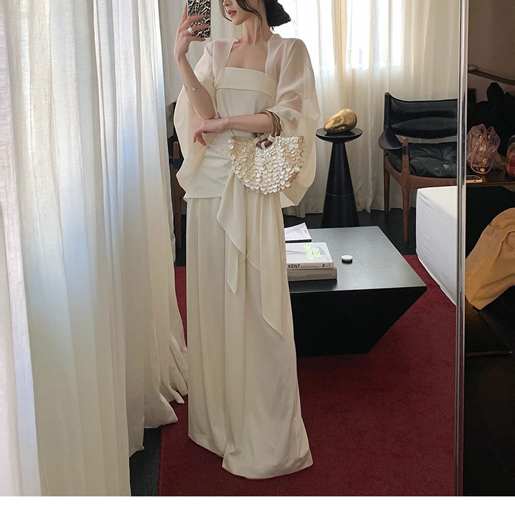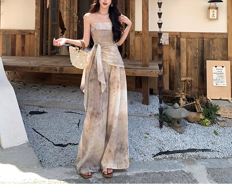 Spot Milan Holiday 원 숄더 튜브 탑 여성 봄 여름 캐주얼 와이드 레그 팬츠 새로운 중국 스타일 투피스 슈트스토어 가기