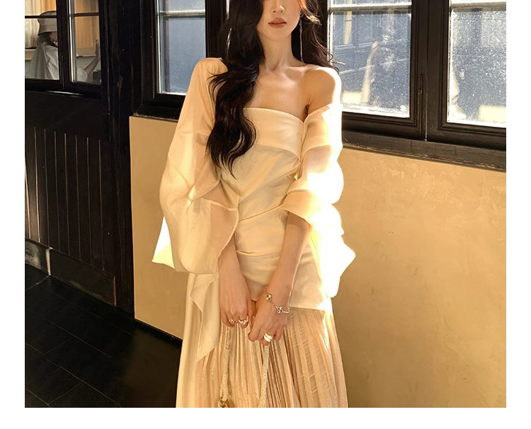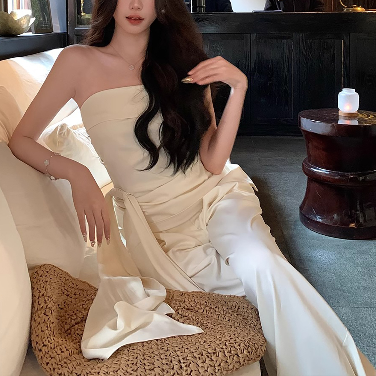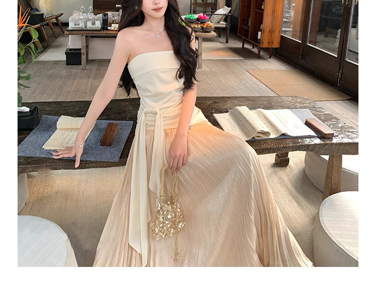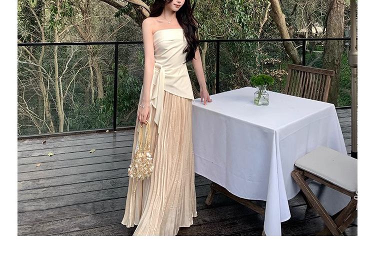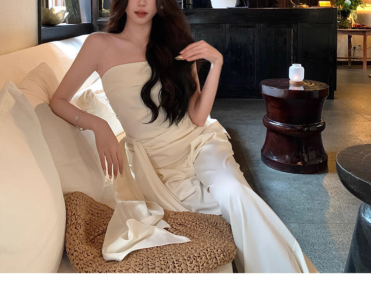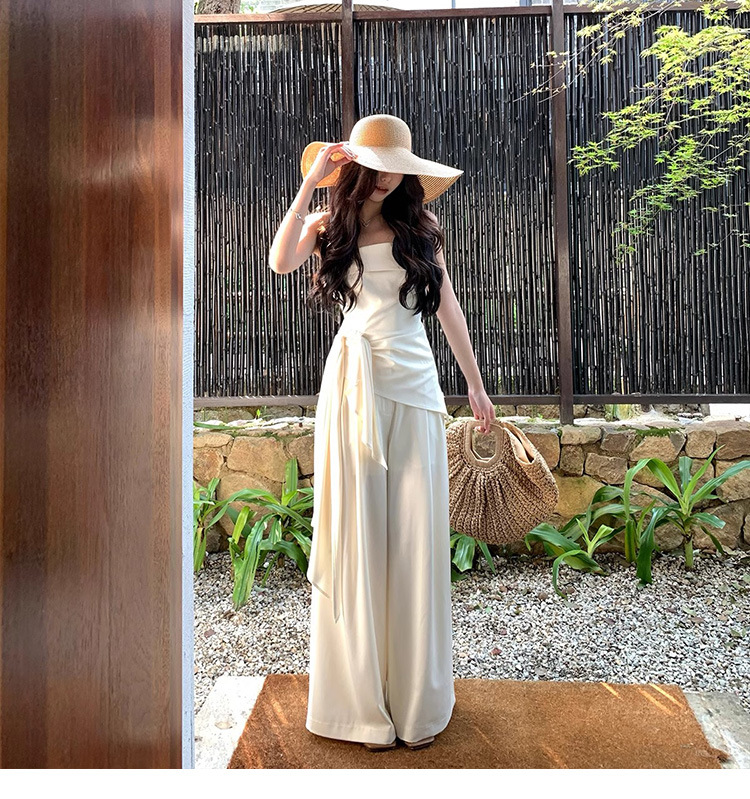 Spot Milan Holiday 원 숄더 튜브 탑 여성 봄 여름 캐주얼 와이드 레그 팬츠 새로운 중국 스타일 투피스 슈트