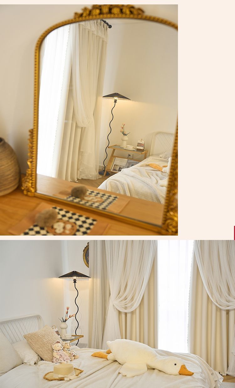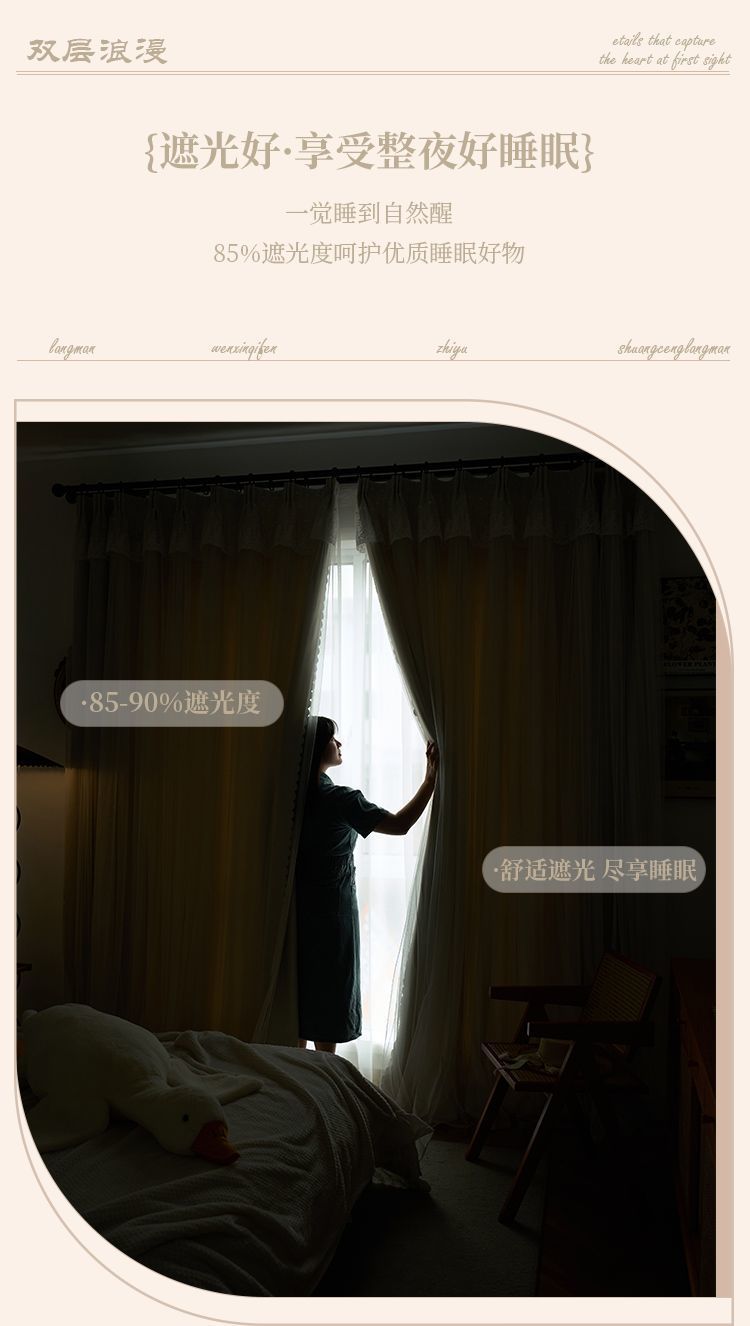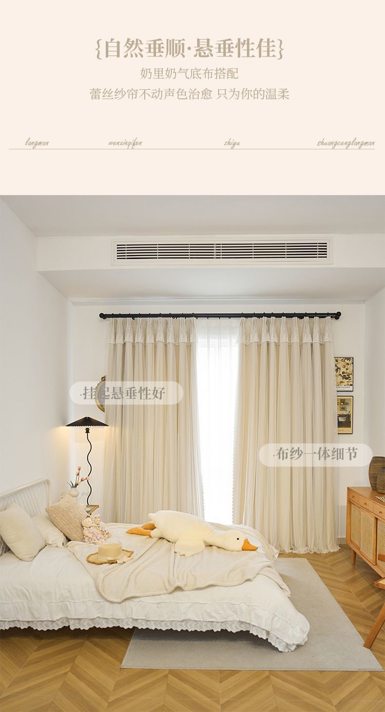 간단한 크림 더블 천 원사 통합 두꺼운 커튼 레이스 침실 공주 스타일 음영 소녀 새로운 스타일스토어 가기