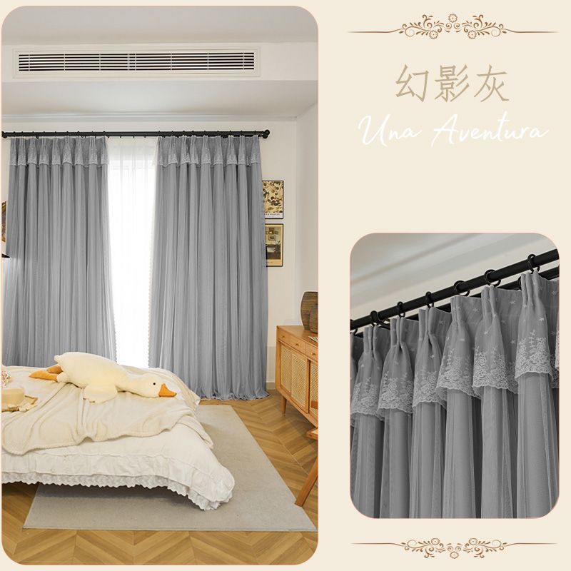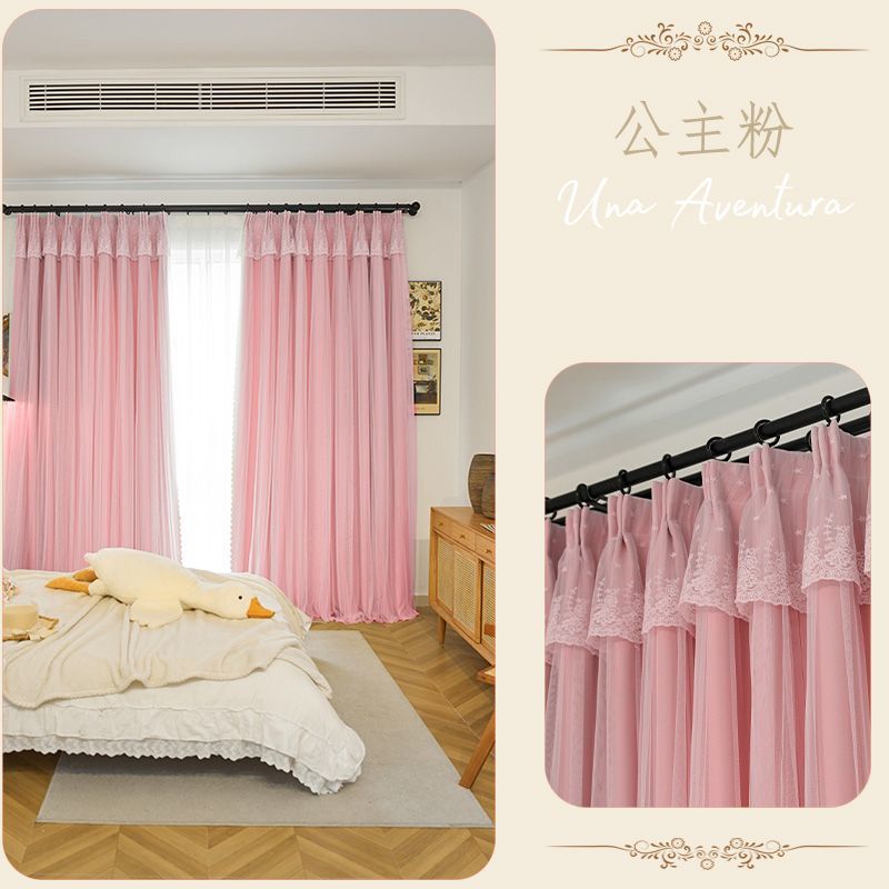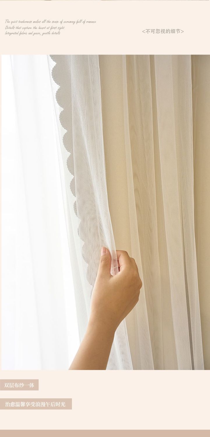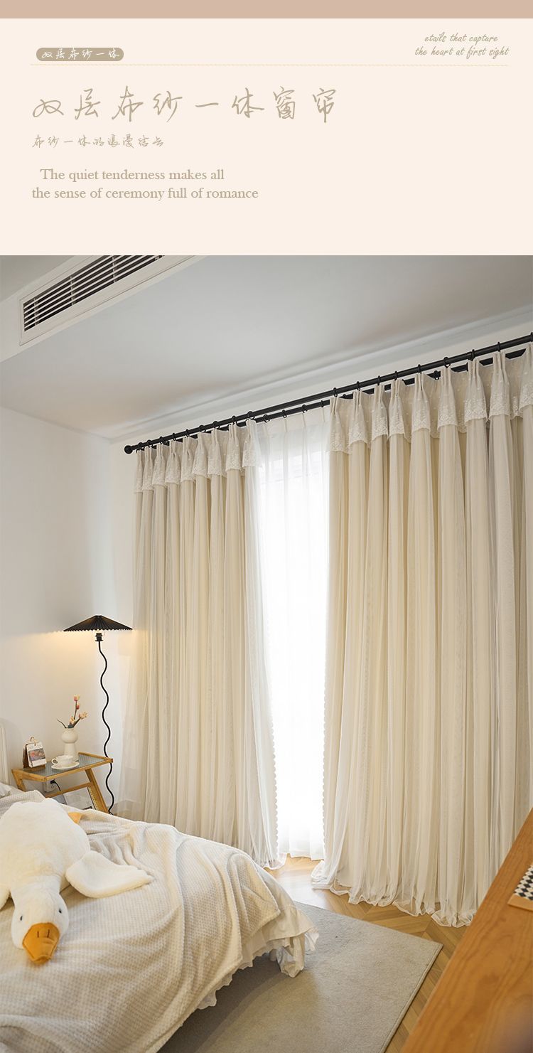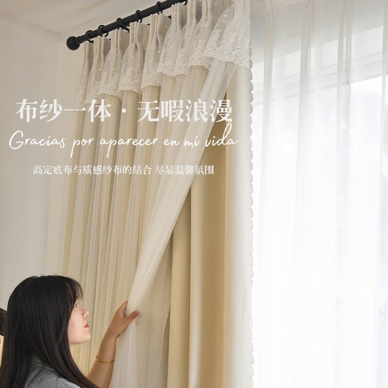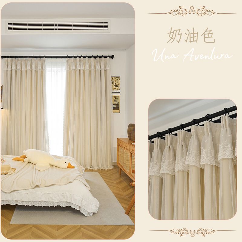 간단한 크림 더블 천 원사 통합 두꺼운 커튼 레이스 침실 공주 스타일 음영 소녀 새로운 스타일