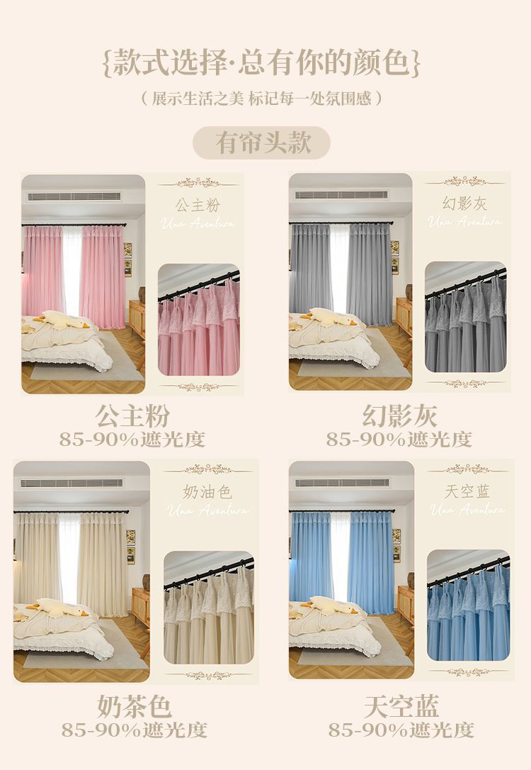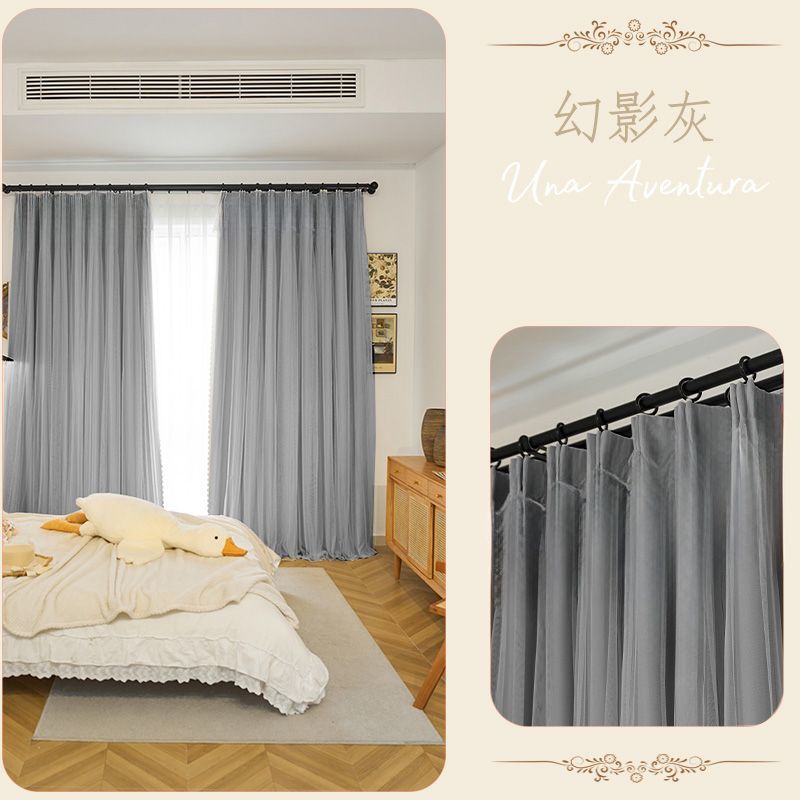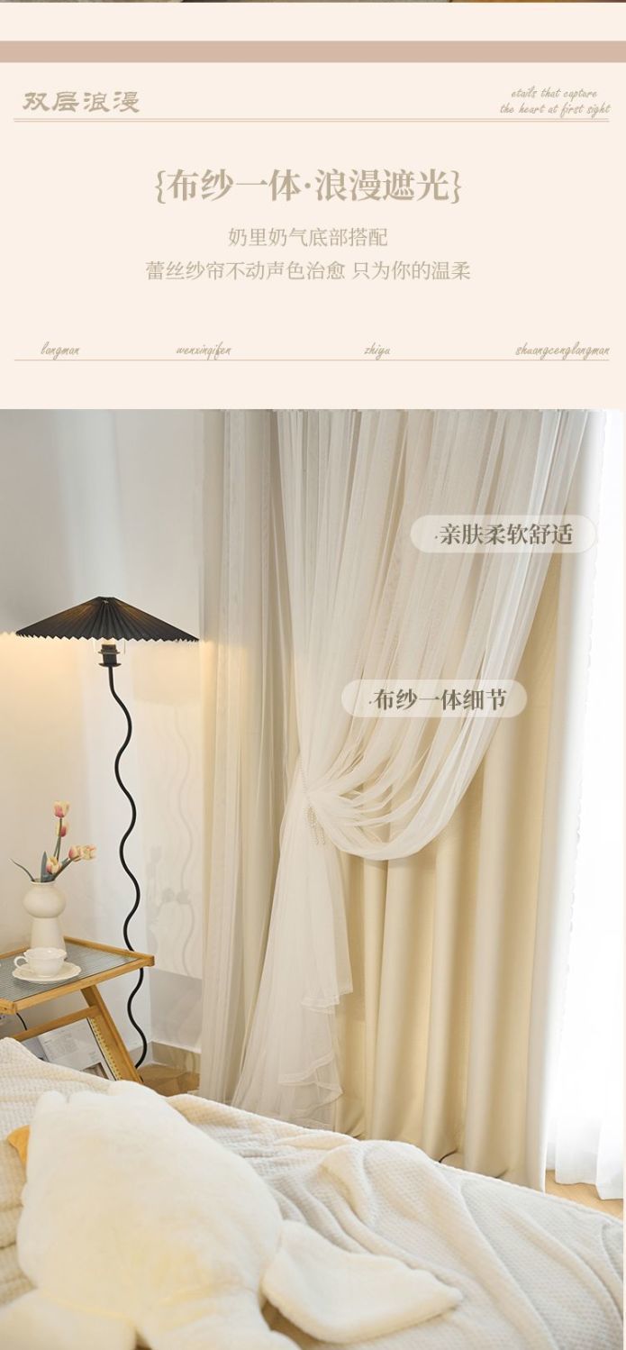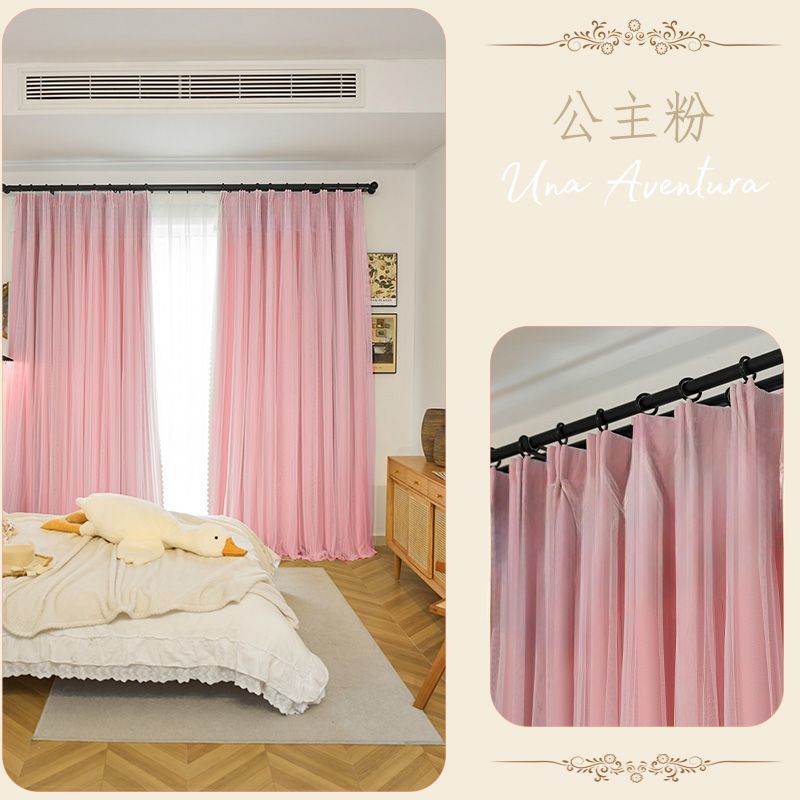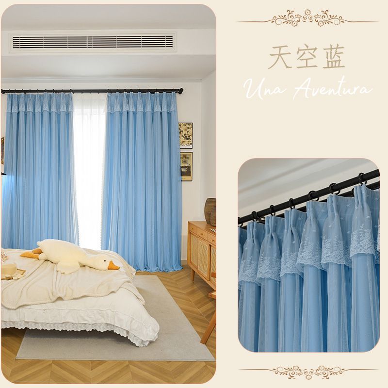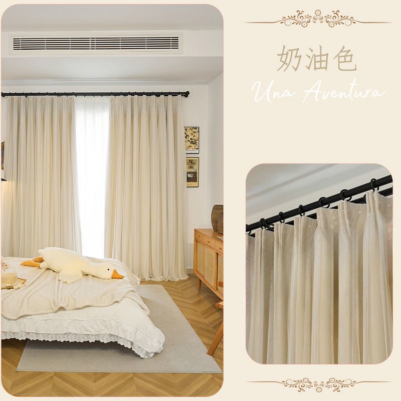 간단한 크림 더블 천 원사 통합 두꺼운 커튼 레이스 침실 공주 스타일 음영 소녀 새로운 스타일