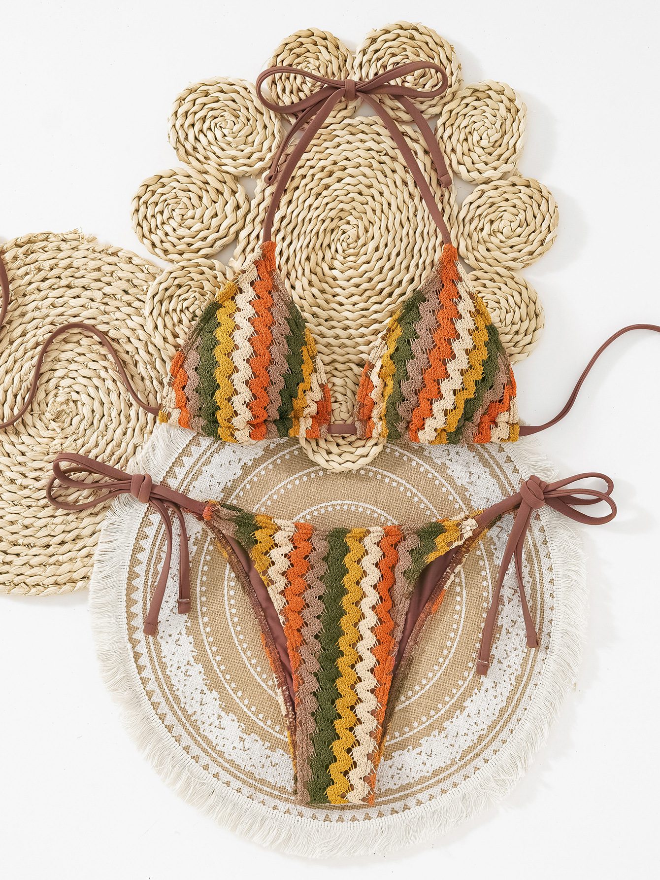 2026 신상 유럽 및 미국 아마존 비키니 물결무늬 배색 끈 섹시한 분리형 비키니 수영복 여성용스토어 가기