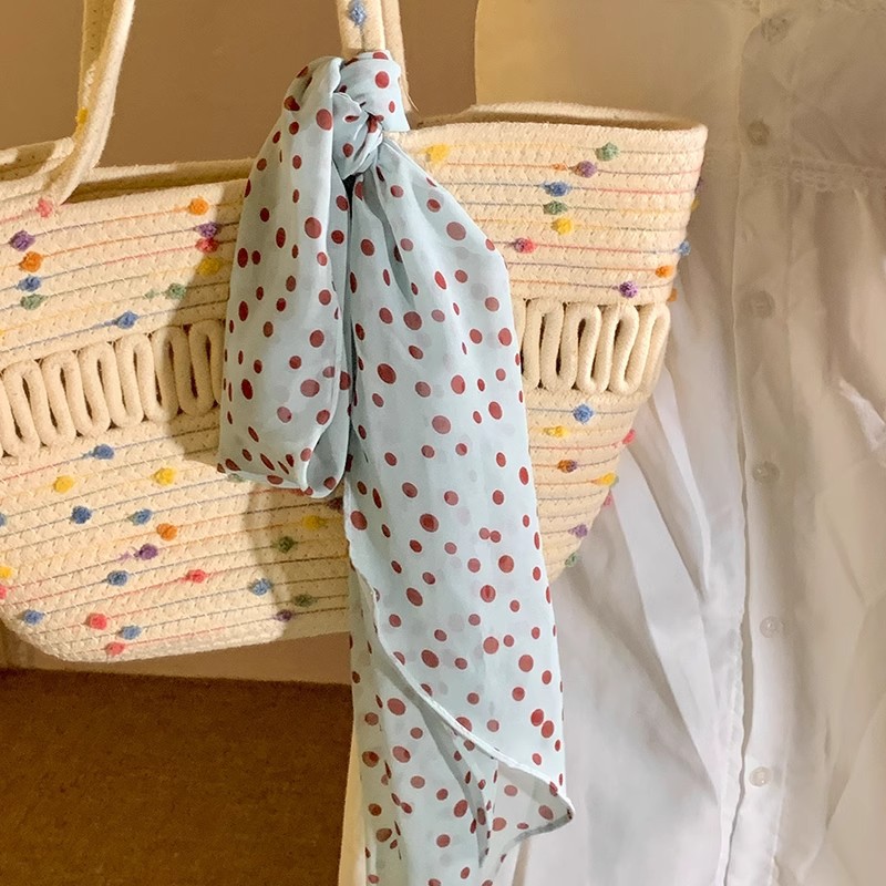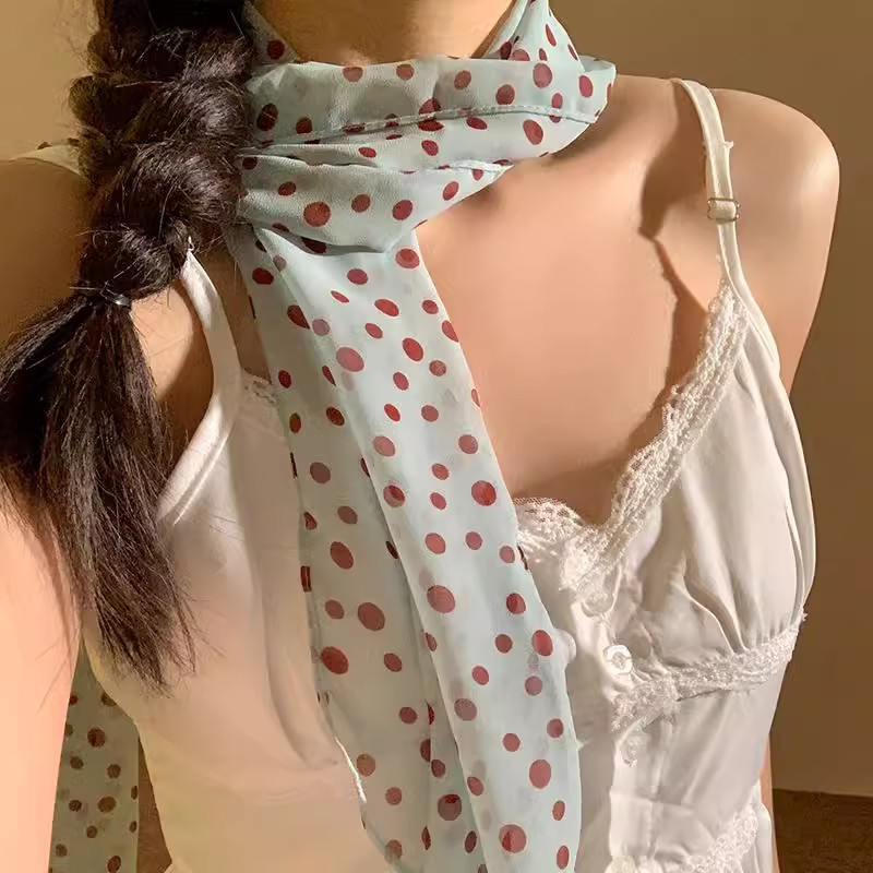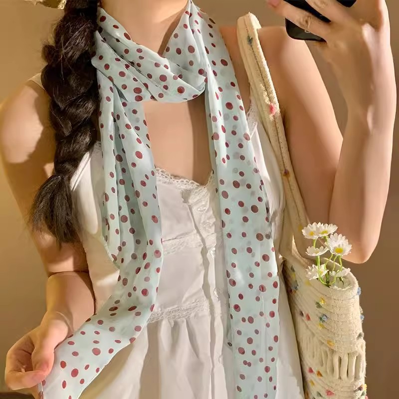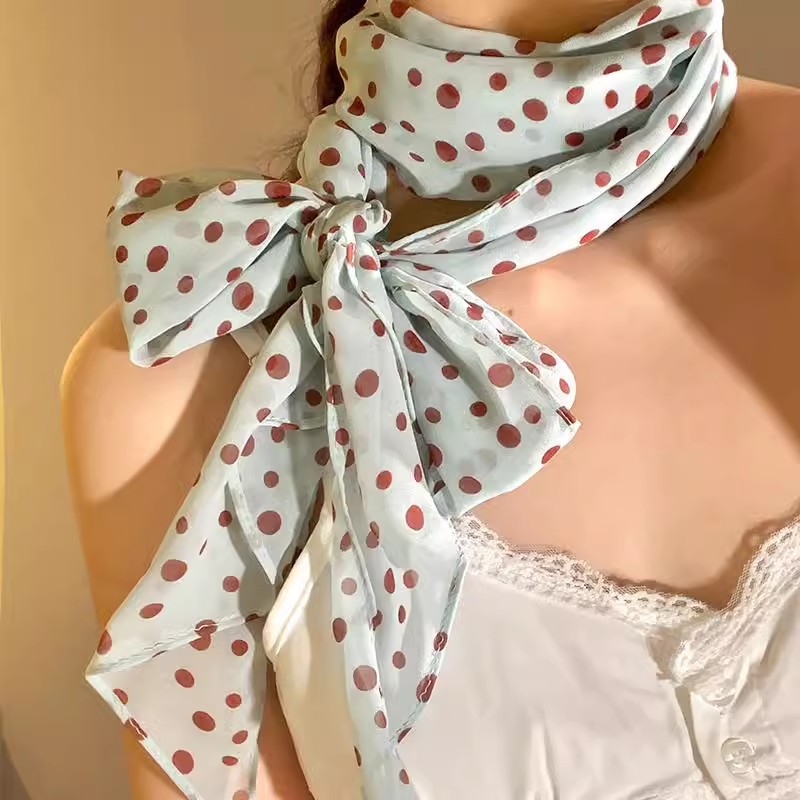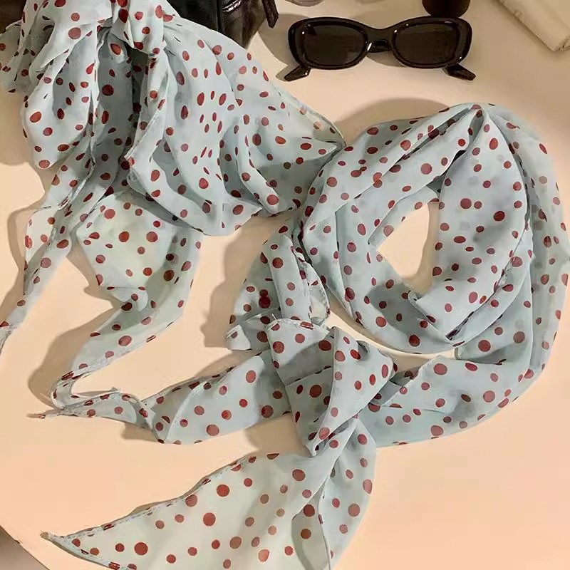 헤이즈 블루 프렌치 도트 프린트 스카프 여성의 2025 새로운 봄과 여름 게으른 스타일 액세서리 목 긴 스카프 헤어 밴드스토어 가기