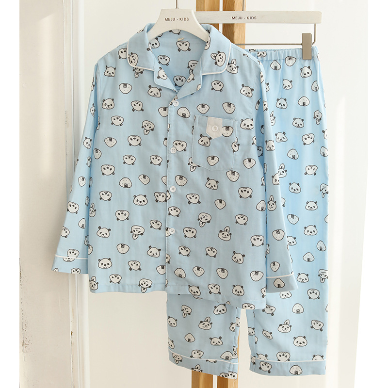 신제품 소년 긴팔 바지 면 더블 레이어 거즈 옷깃 곰 귀여운 아동복 홈웨어 잠옷스토어 가기