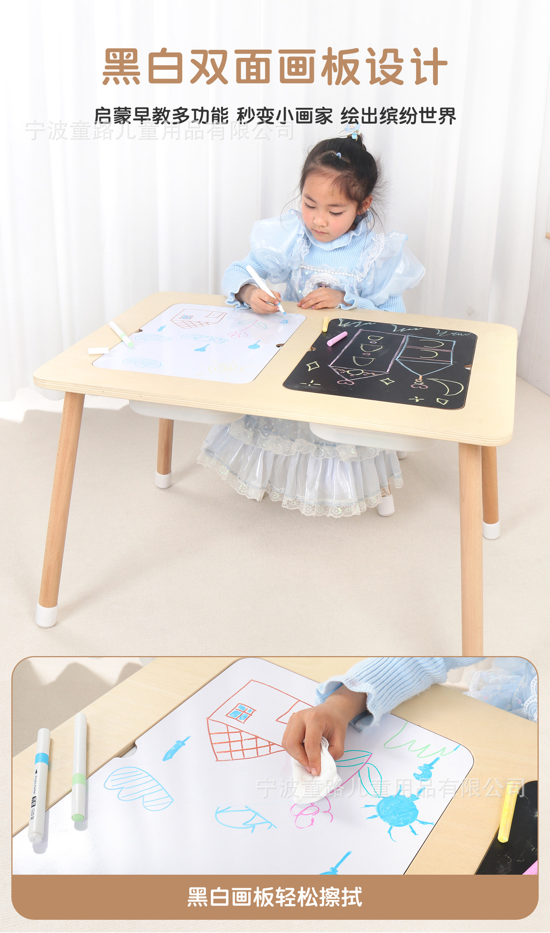 모래와 물 그림을위한 어린이 빌딩 블록 테이블 다기능 조기 교육 자작 나무 감각 훈련 테이블과 의자 세트 게임 장난감 테이블스토어 가기
