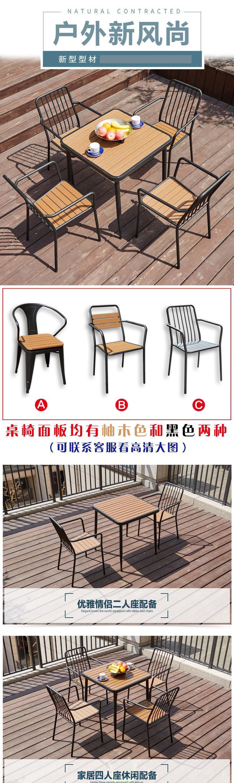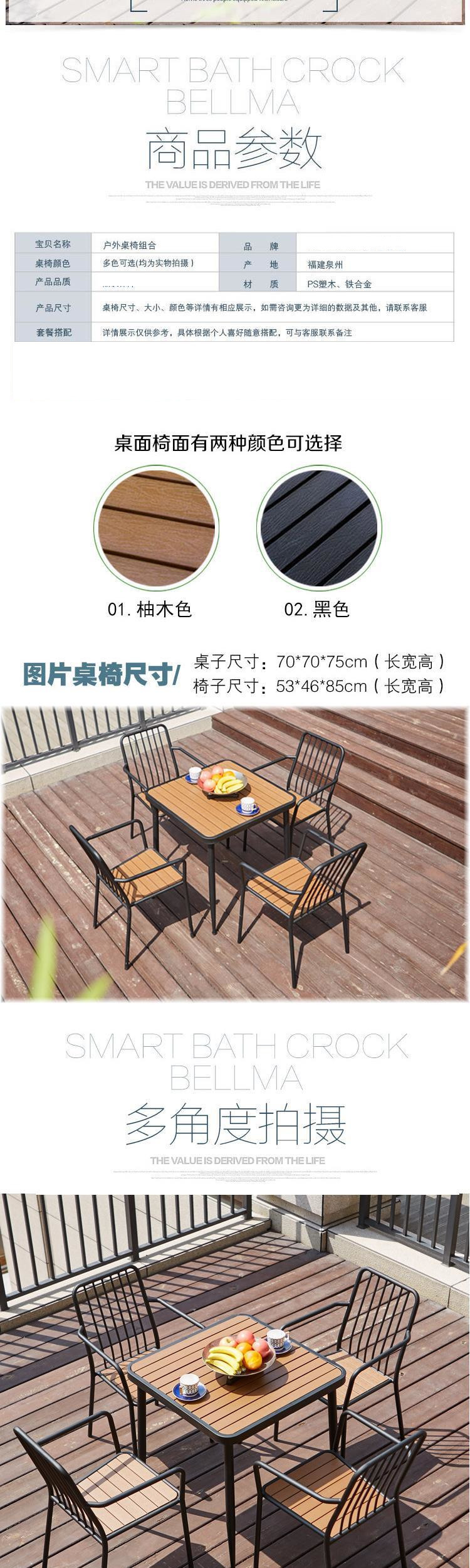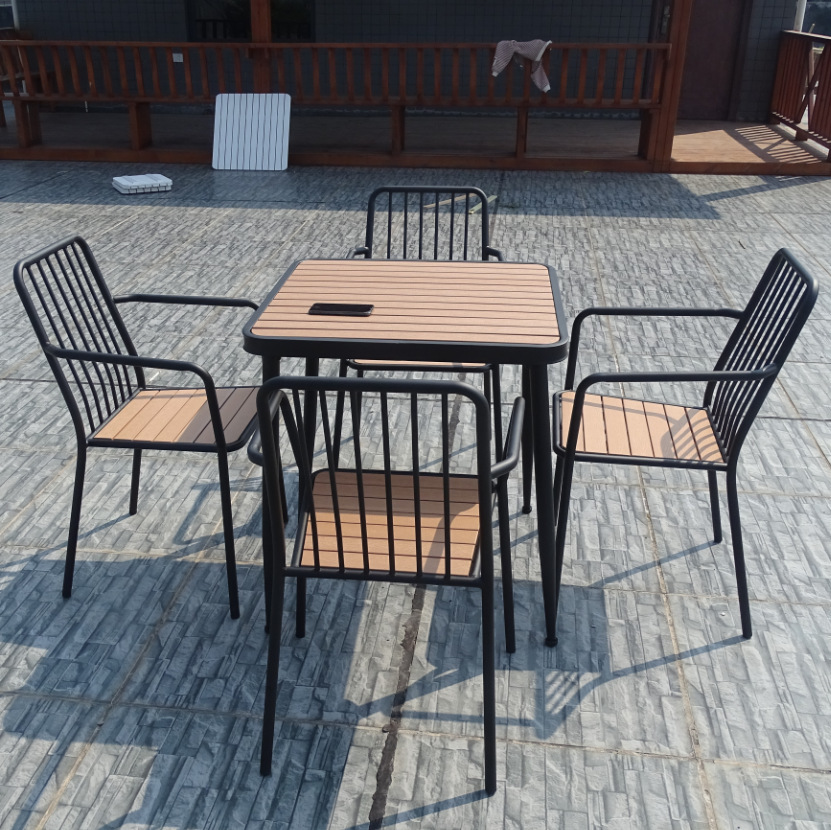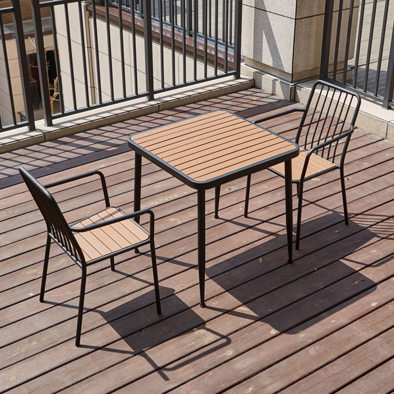 야외 플라스틱 목재 테이블과 의자 조합 B&B 안뜰 방수 및 자외선 차단 레저 작은 사각형 테이블 야외 발코니 야외 티 테이블