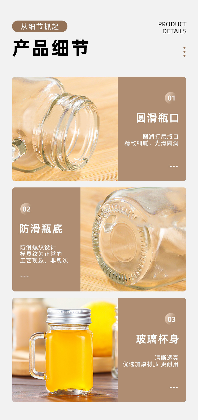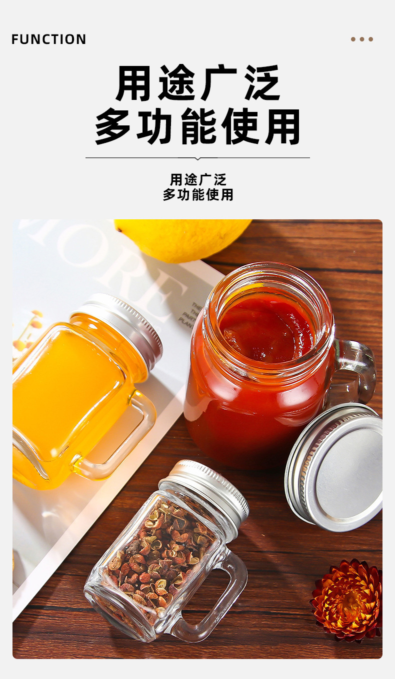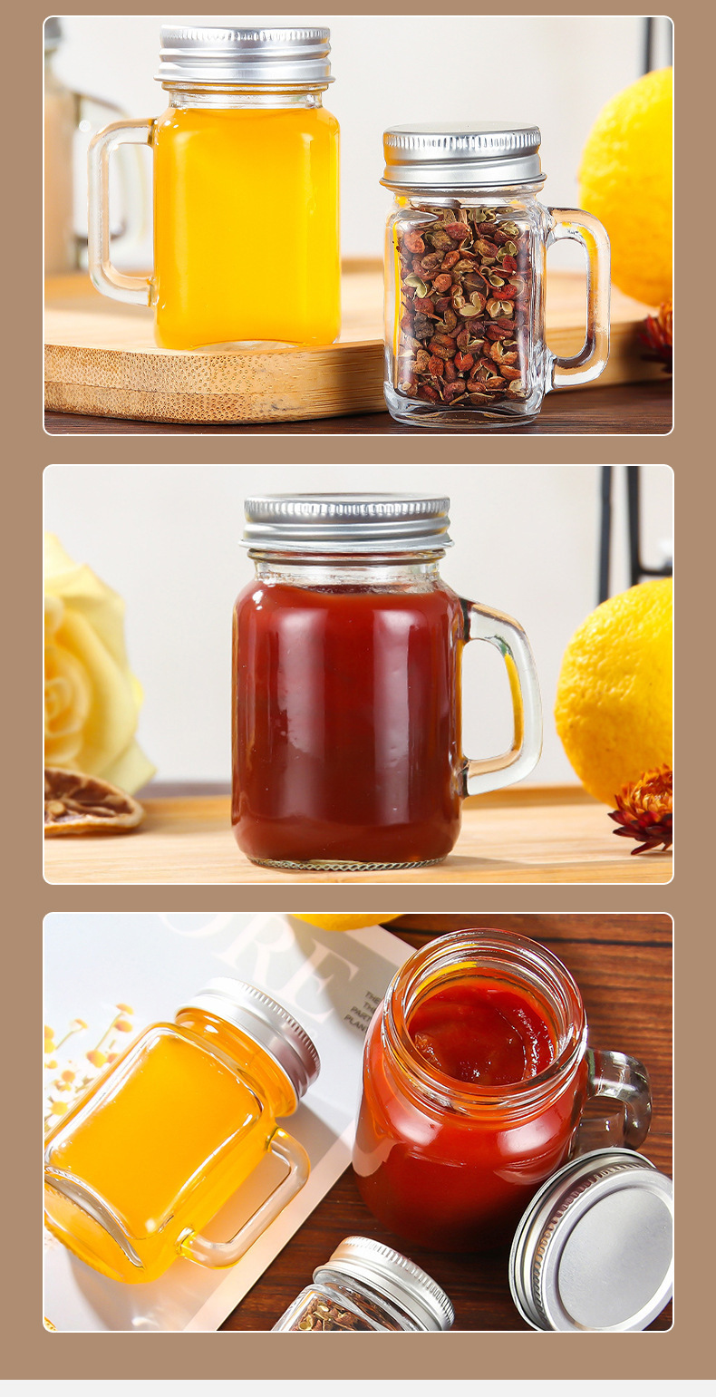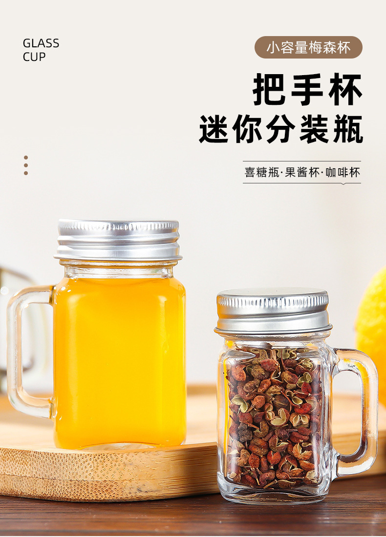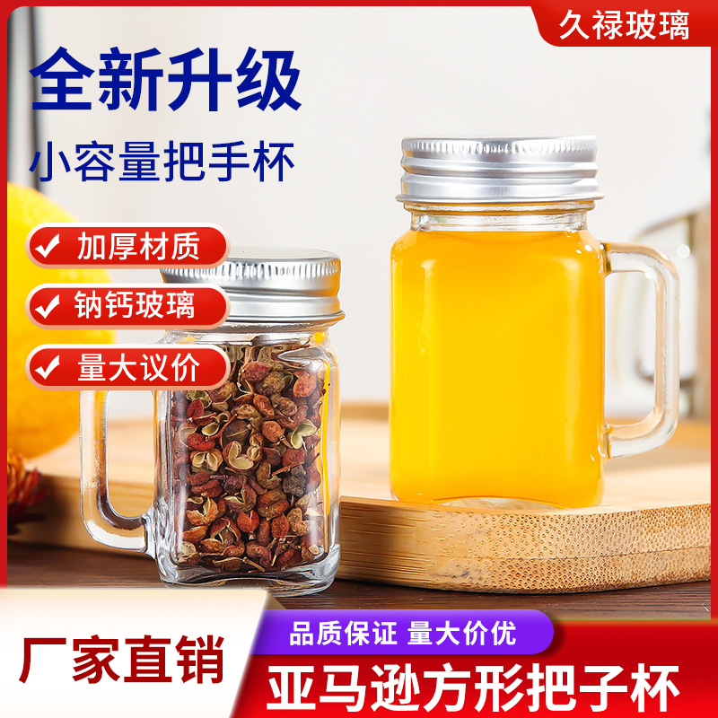 아마존 유리 음료 병 미니 40ml 커피 농축 마멀레이드 병 컵 너트 메이슨 항아리 핸들 컵