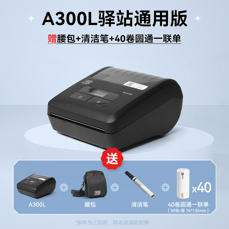 • A300L 스테이션 유니버설 버전 + 허리 가방 + 클리닝 펜 + [40롤, 50매/롤] Zhongtong 단일 시트 76*130mm