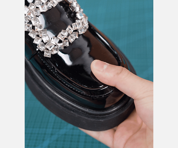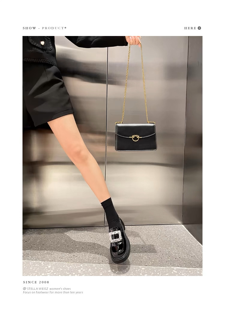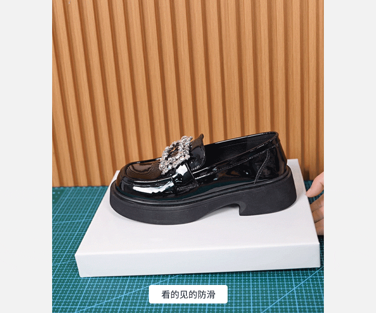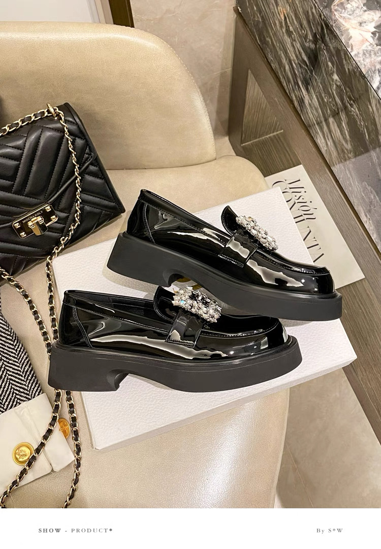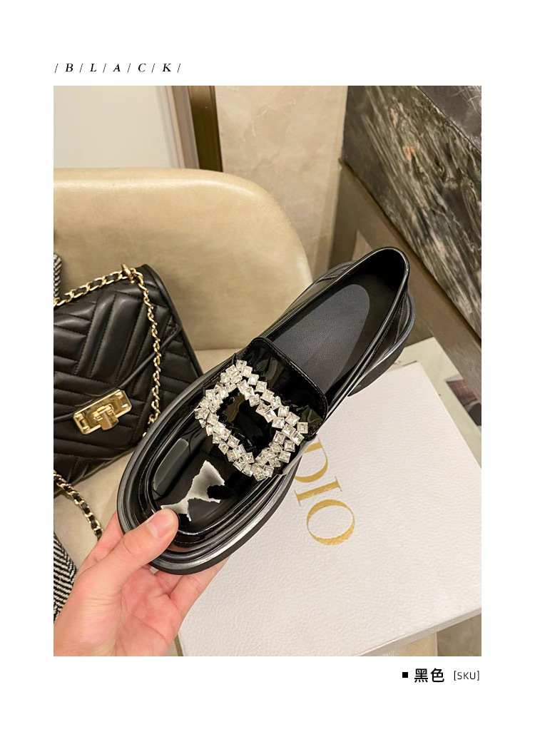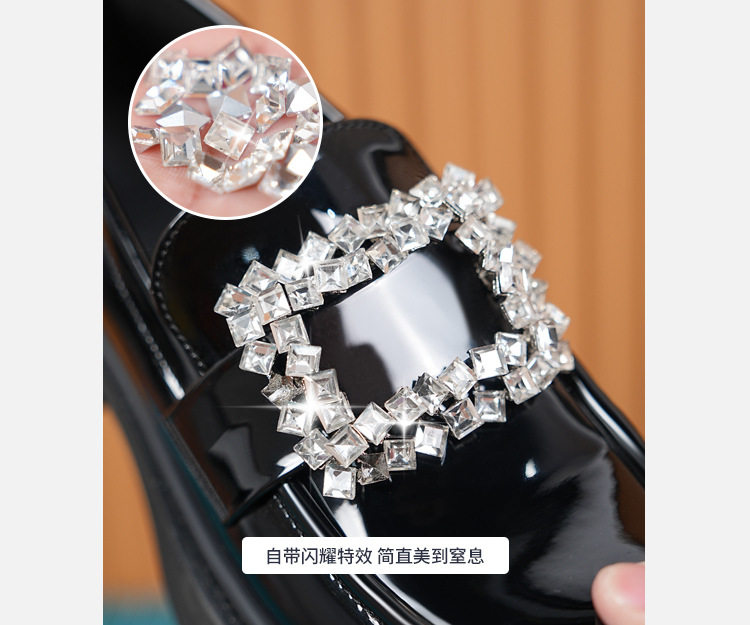 가죽 광장 버클 라인스톤 로퍼 여성 2025 가을 겨울 새로운 기모 두꺼운 바닥 작은 가죽 신발 jk 싱글 신발 영국 여성 신발스토어 가기