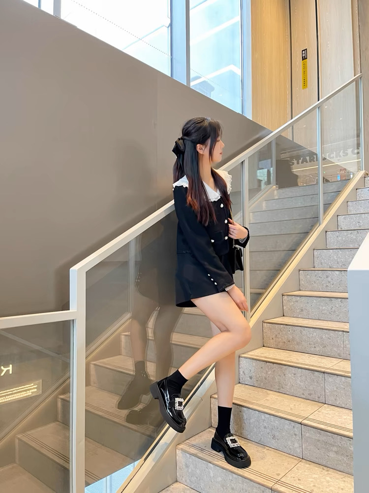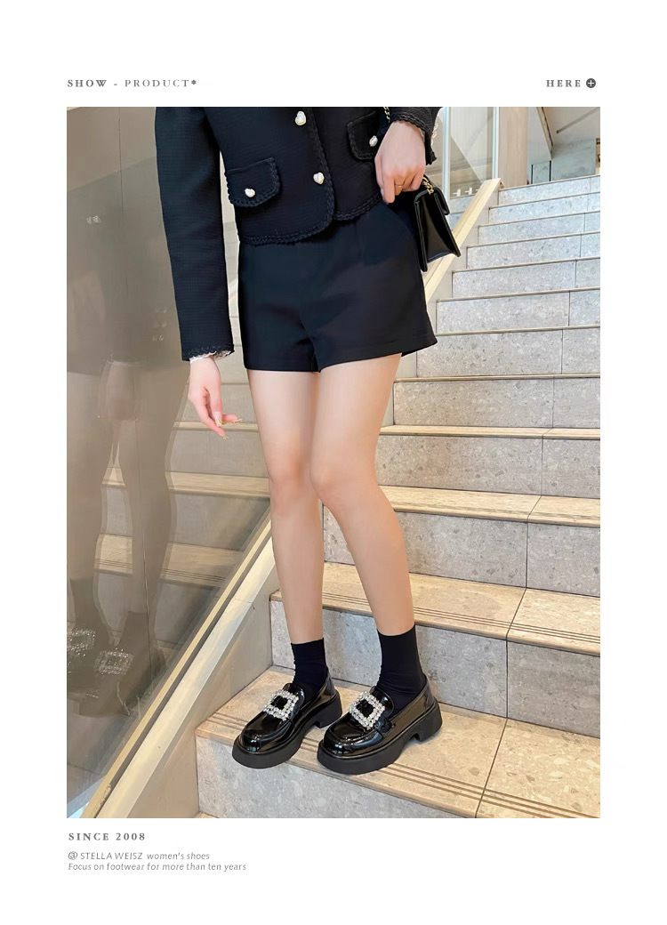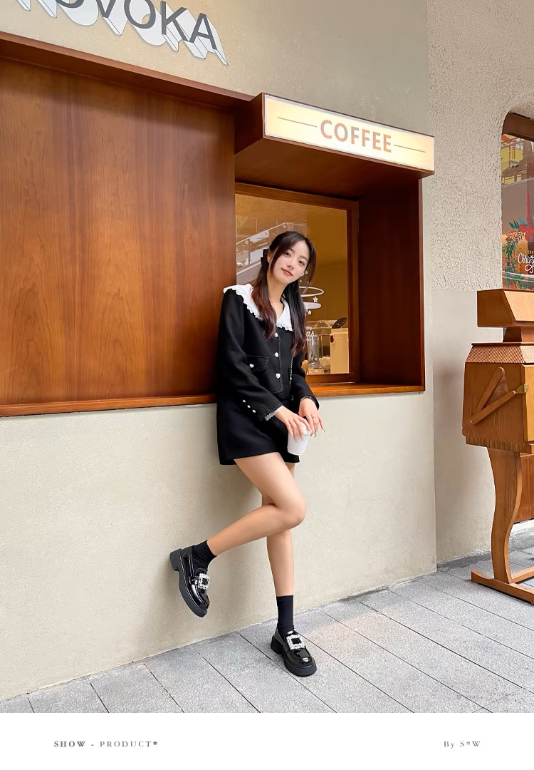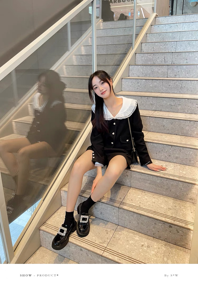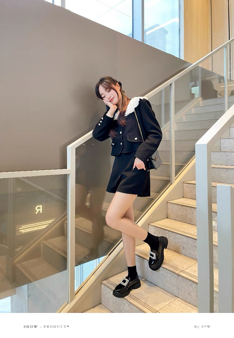 가죽 광장 버클 라인스톤 로퍼 여성 2025 가을 겨울 새로운 기모 두꺼운 바닥 작은 가죽 신발 jk 싱글 신발 영국 여성 신발스토어 가기