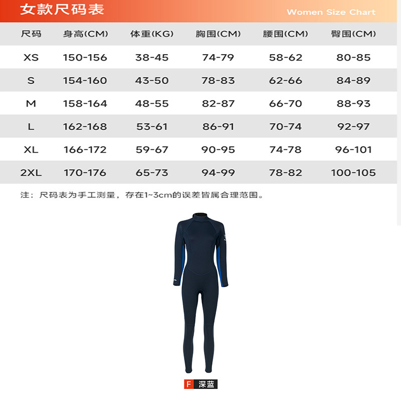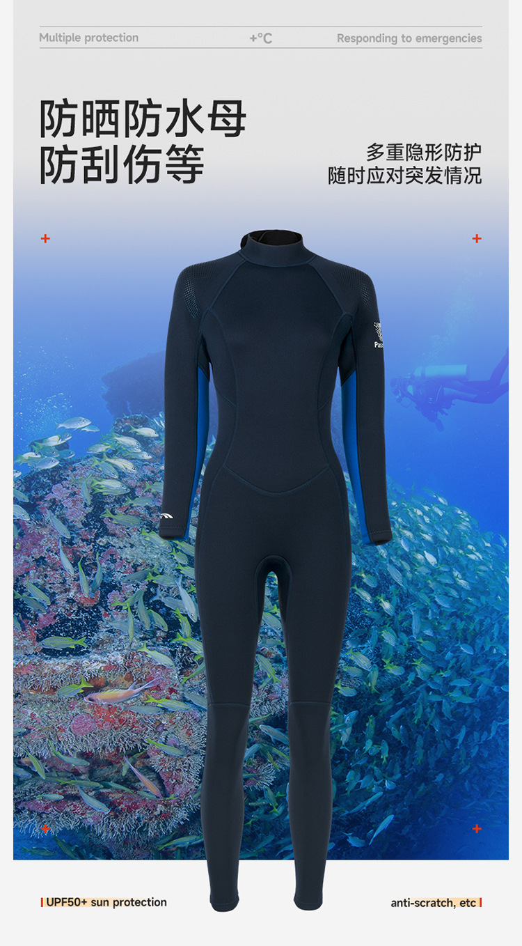 여성용 3mm 원피스 다이빙 슈트, 긴팔 수영복, 프리다이빙, 방한, 보온 및 보호 스노클링 슈트, 원피스 서핑 슈트