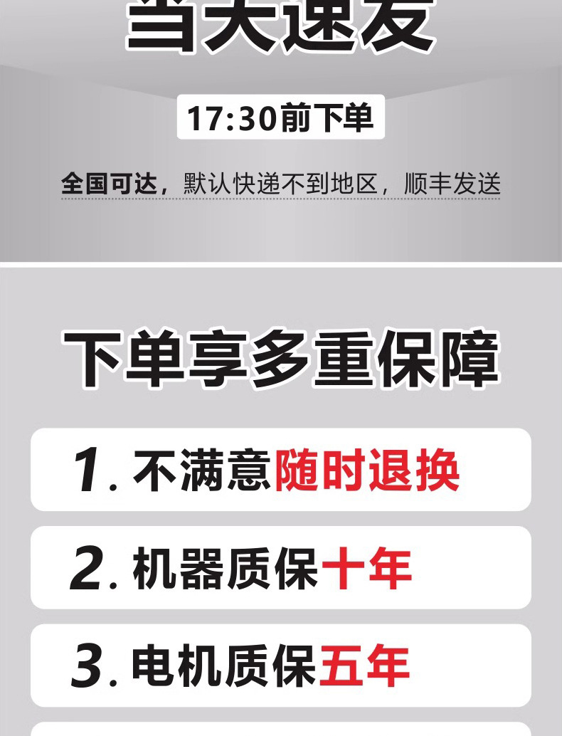 • 전체 구리 브러시리스 모터에는 10년 보증이 제공되며, 소손되지 않은 경우 반품 및 반품 배송 비용이 보장됩니다.