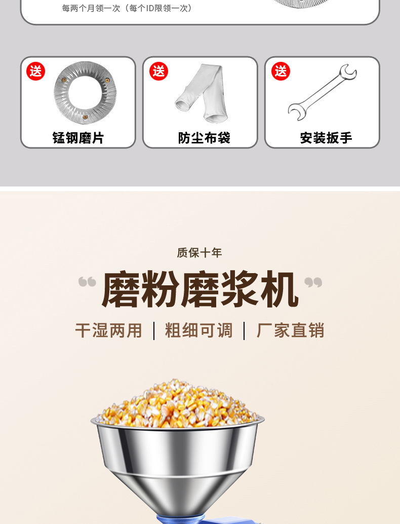 • [강철 연삭 모델 3000W] 전체 구리 모터/업그레이드된 섬세함/두께 조절 가능