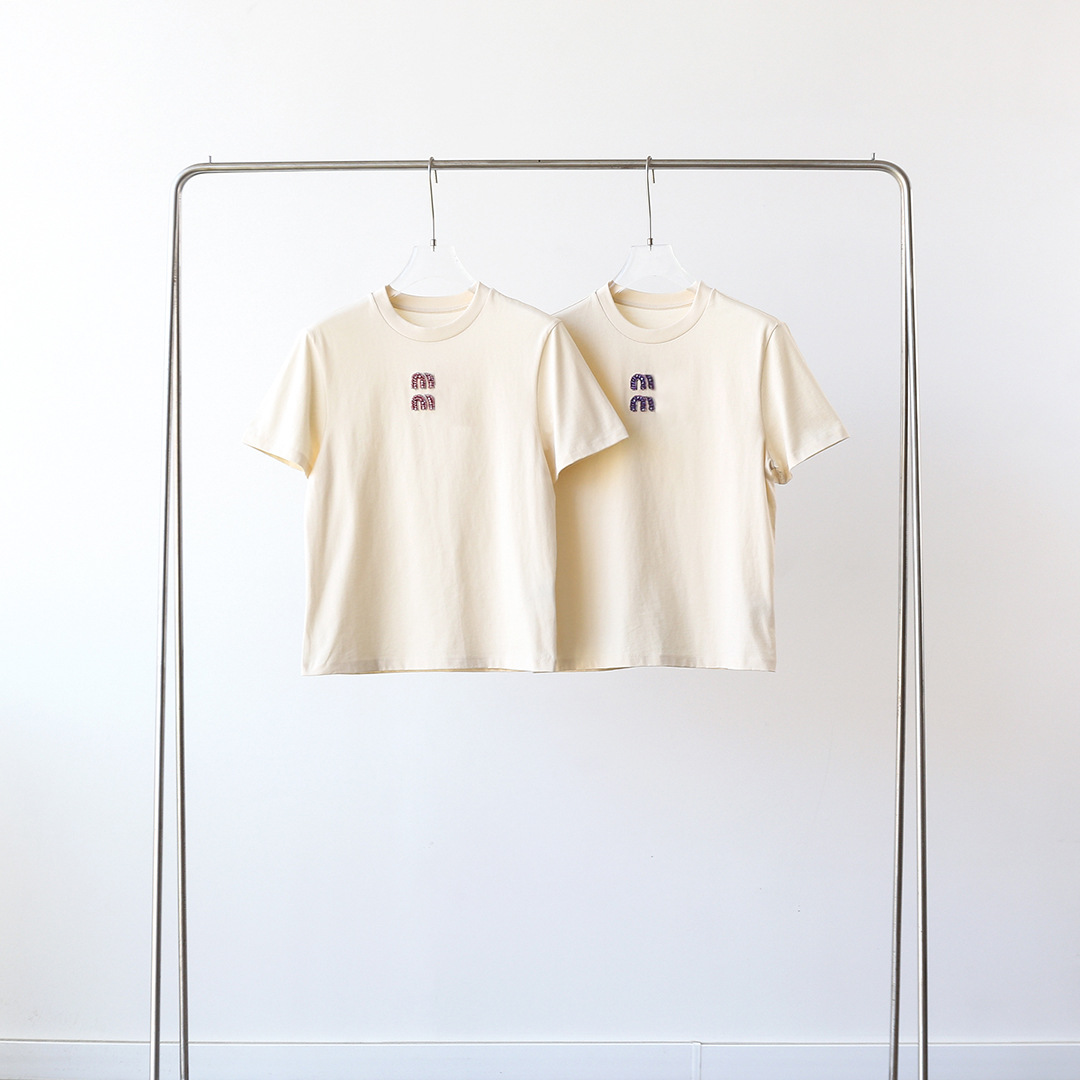 MM 중공업 네일 시퀀스 중립 색상 라운드 넥 반팔 티셔츠 여성의 2025 여름 느슨한 중간 길이 간단한 트렌디 브랜드 T스토어 가기