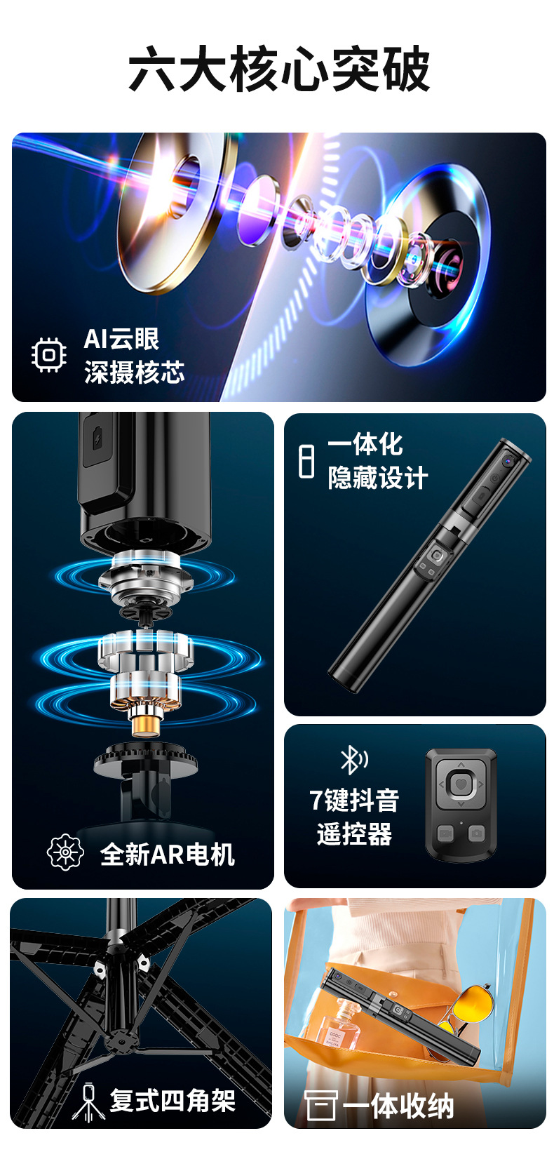 2025 새로운 CL18 셀카봉 보관 일체형 알루미늄 합금 AI 짐벌 휴대폰 홀더 삼각대 공장스토어 가기