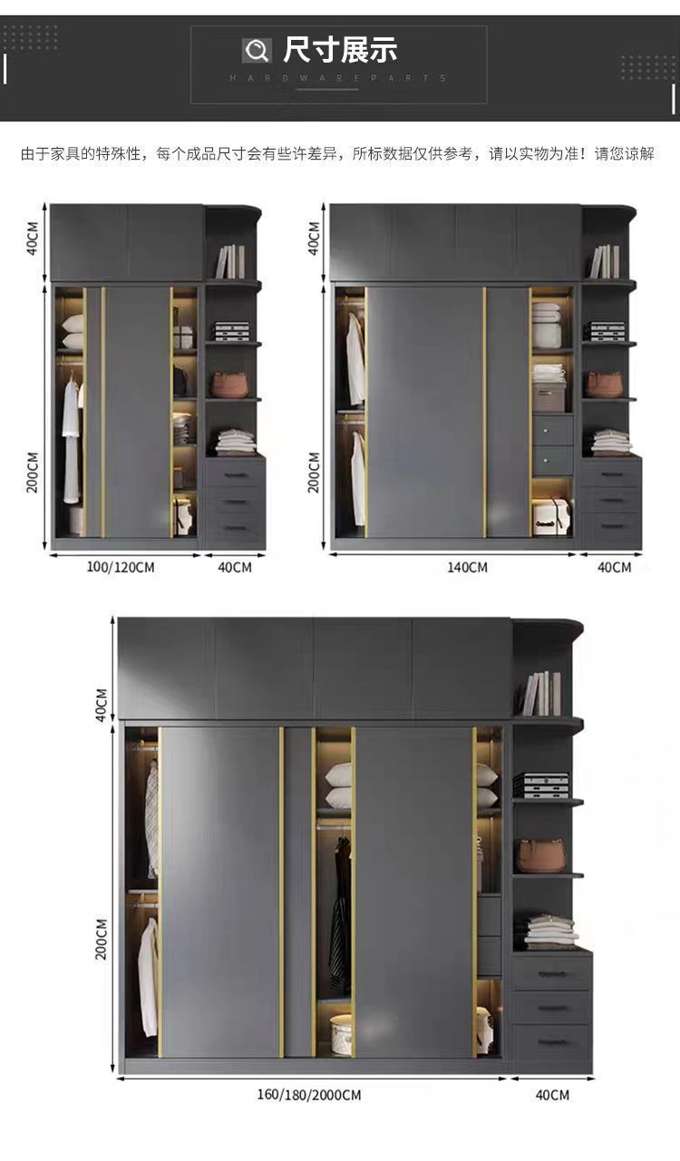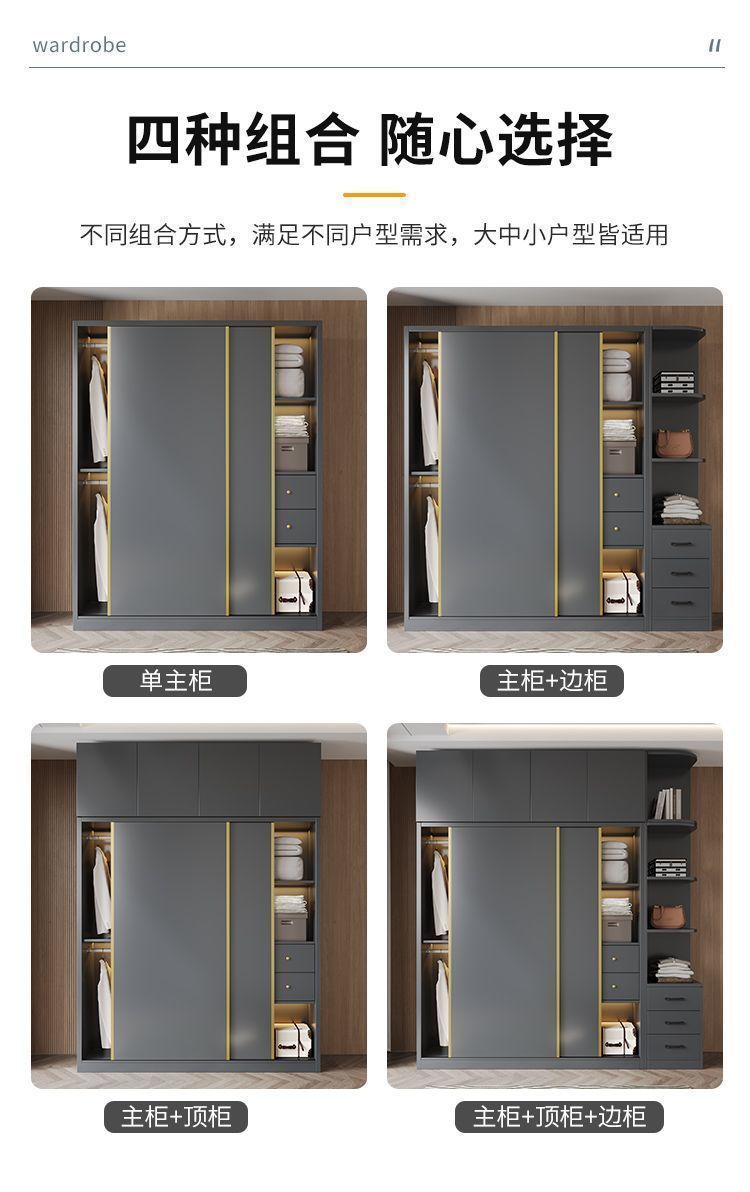 옷장 마스터 침실 슬라이딩 도어 가정용 침실 간단한 작은 아파트 가벼운 고급 보관 캐비닛 두 번째 침실 옷감 옷