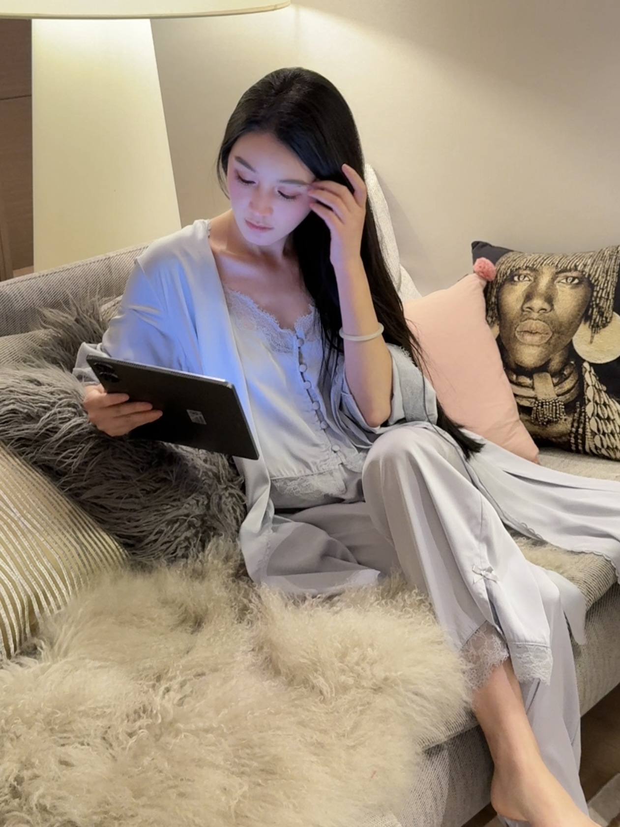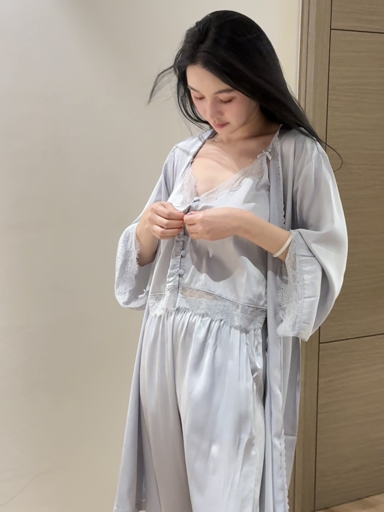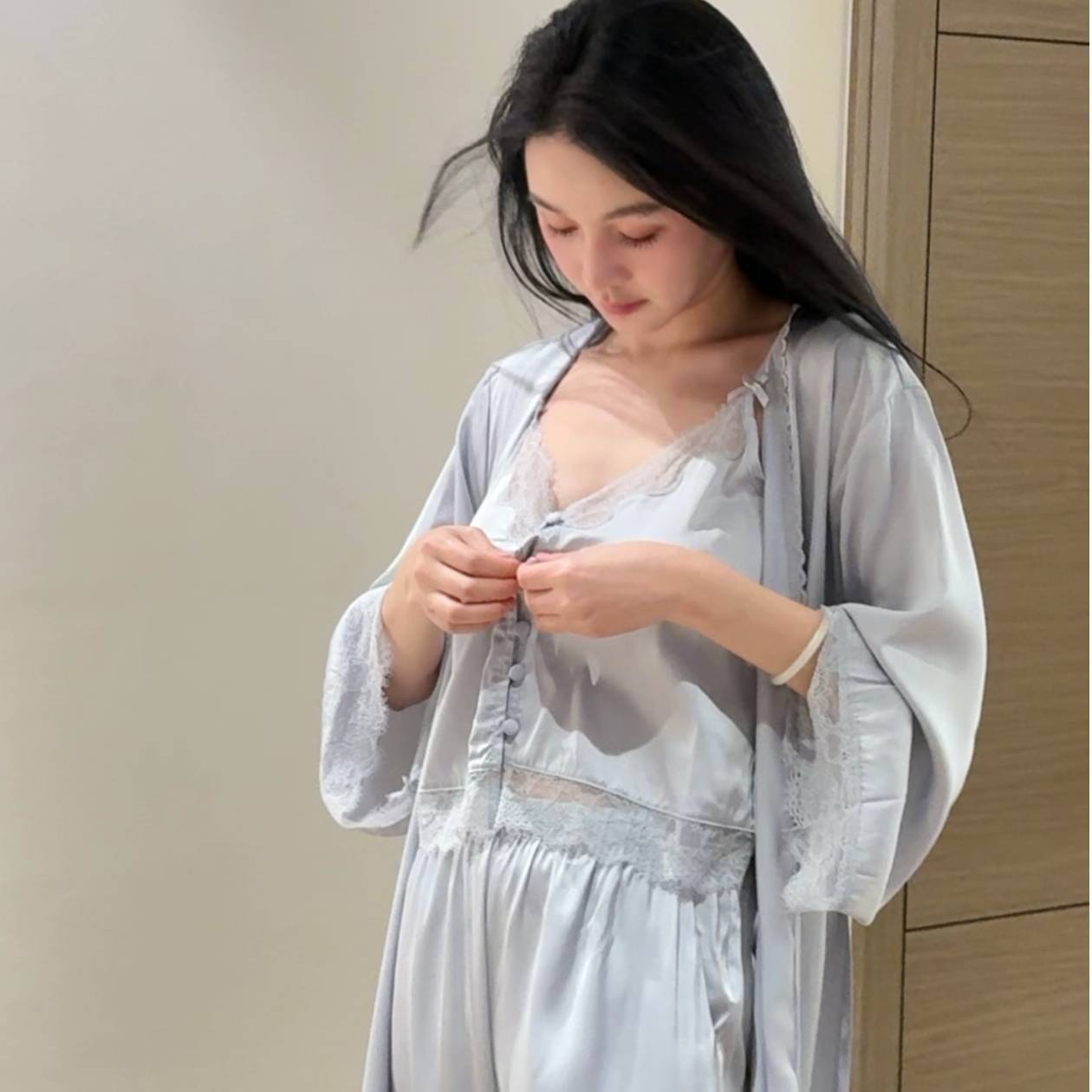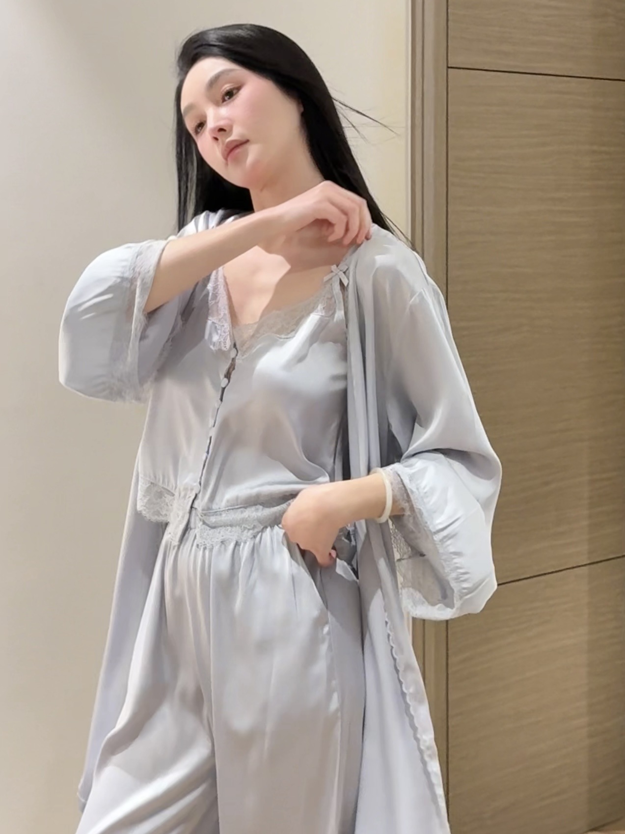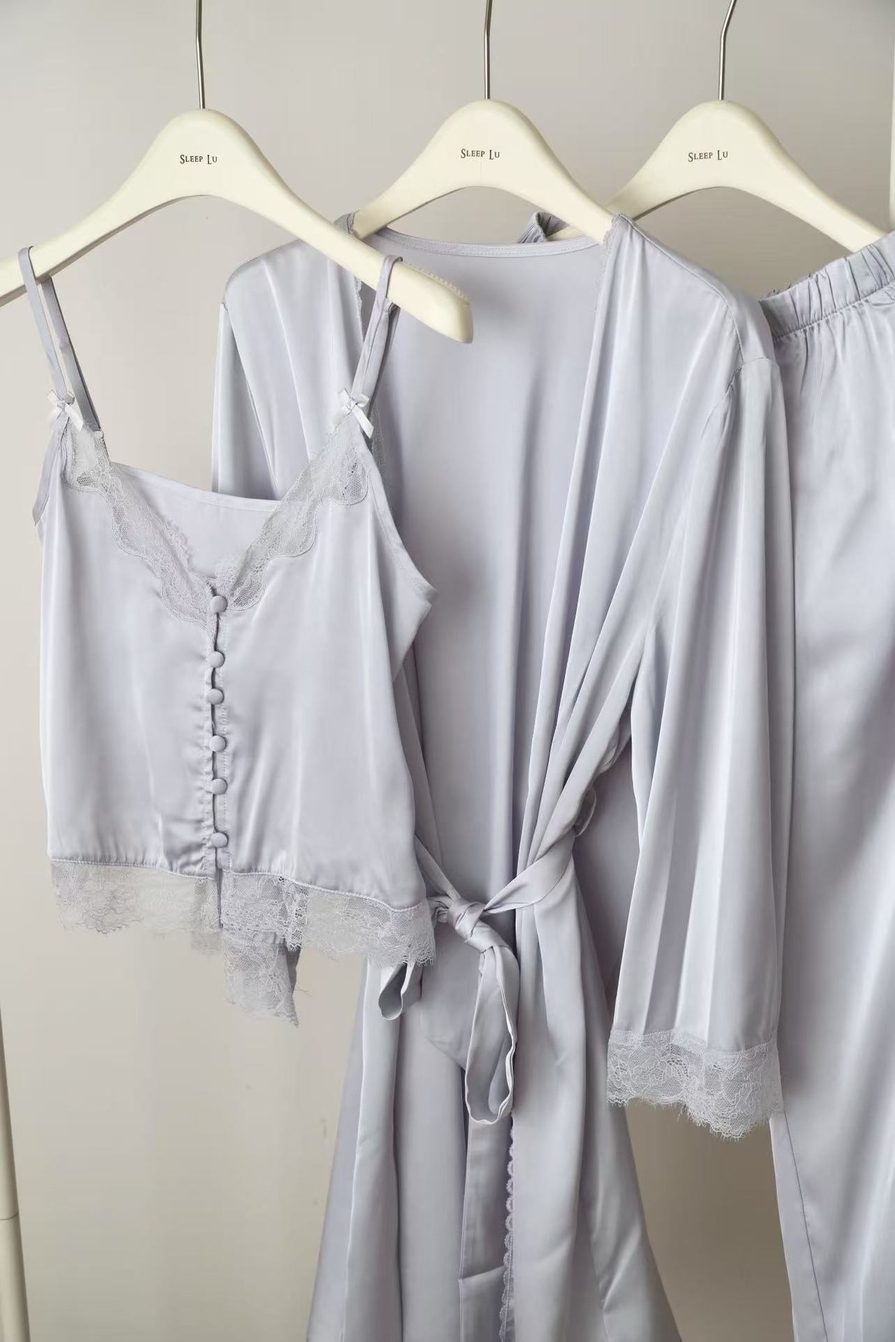 SLEEP LU 정품 "로맨스" 프랑스 레이스 슬링 파자마 여성의 순수한 욕망 홈 의류 3 피스 세트