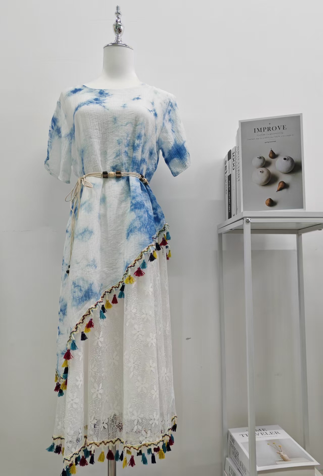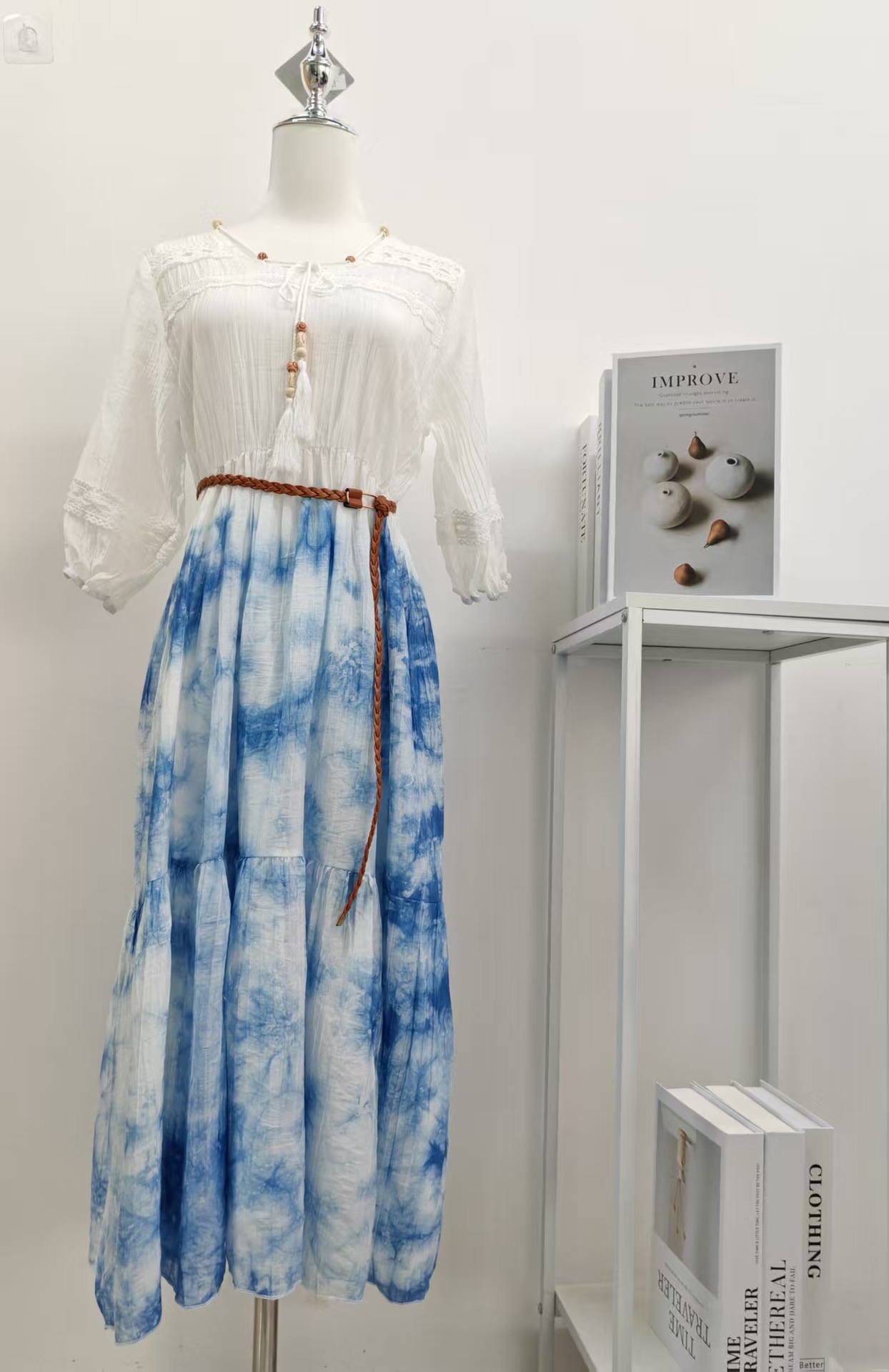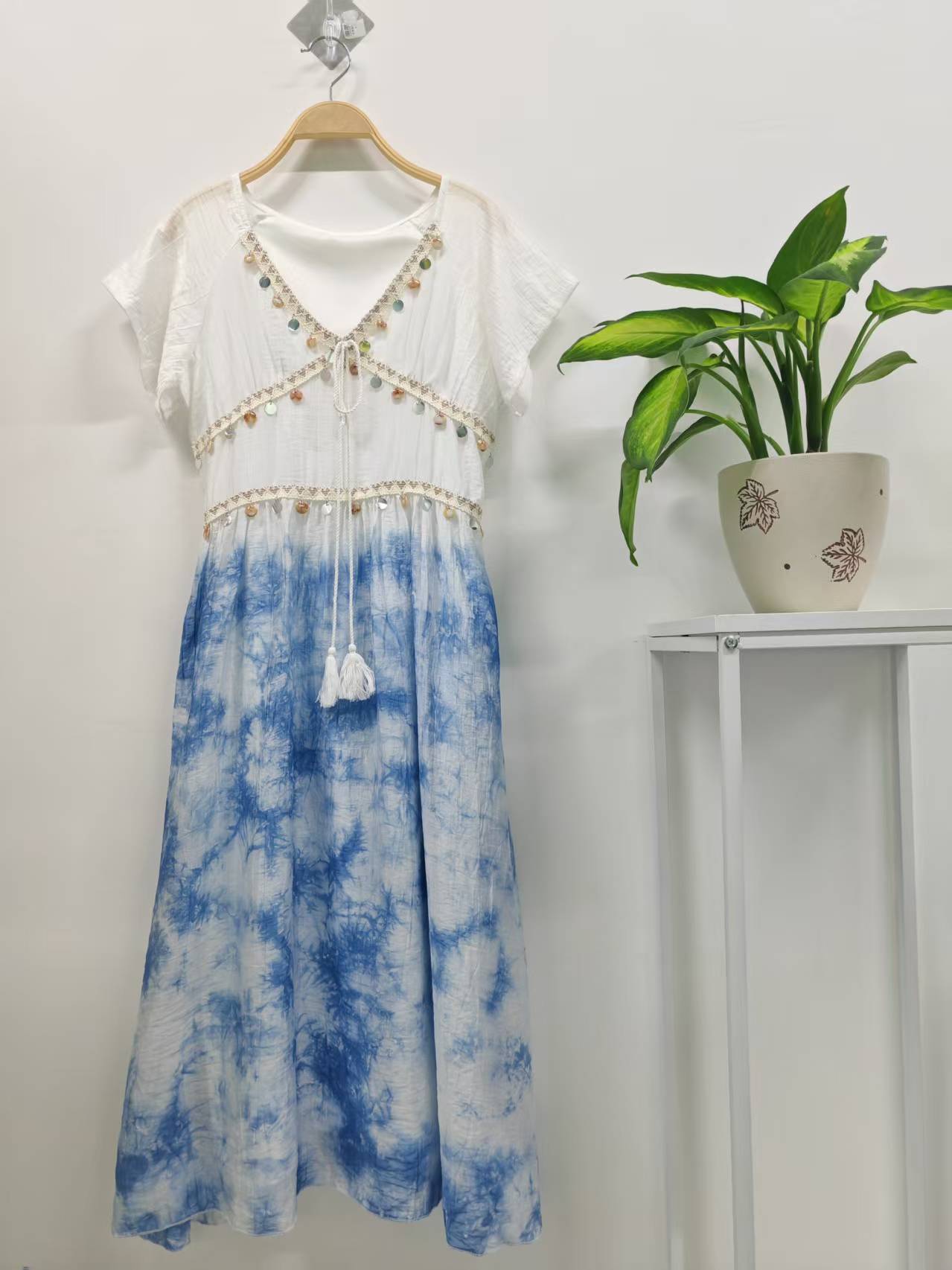 오리지널 순수 식물 이소라 수제 타이 염색 드레스 여성 여름 여성 롱 스커트 하이 엔드 스커트스토어 가기