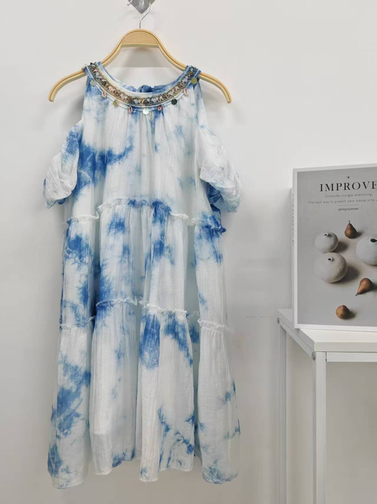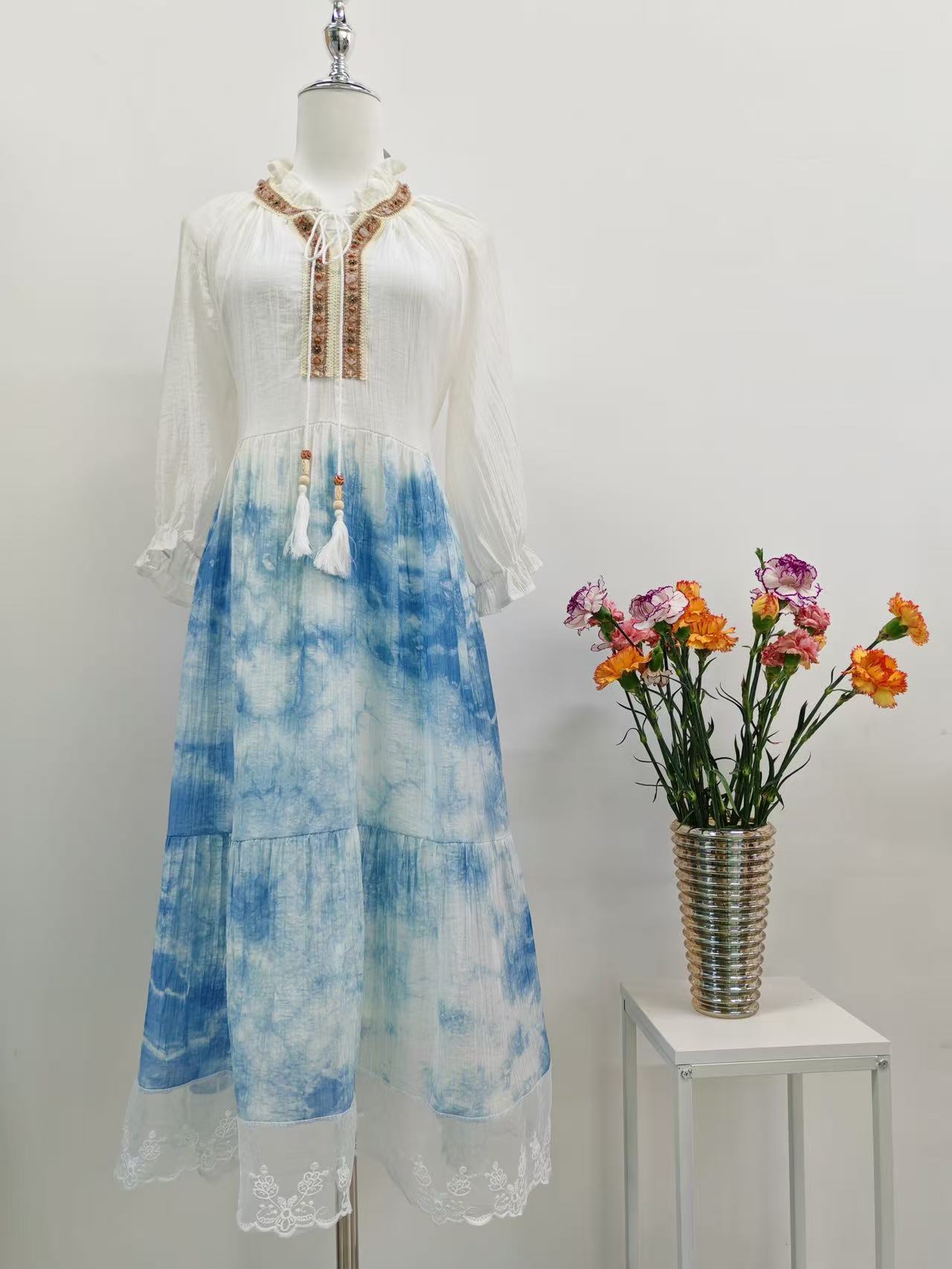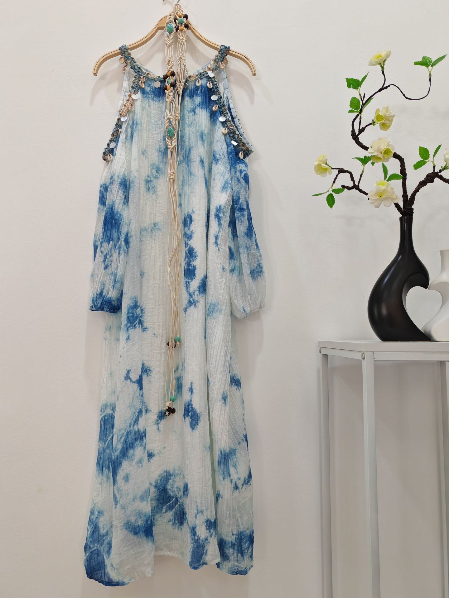 오리지널 순수 식물 이소라 수제 타이 염색 드레스 여성 여름 여성 롱 스커트 하이 엔드 스커트스토어 가기