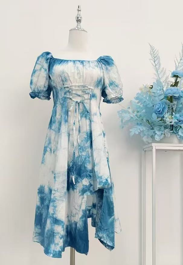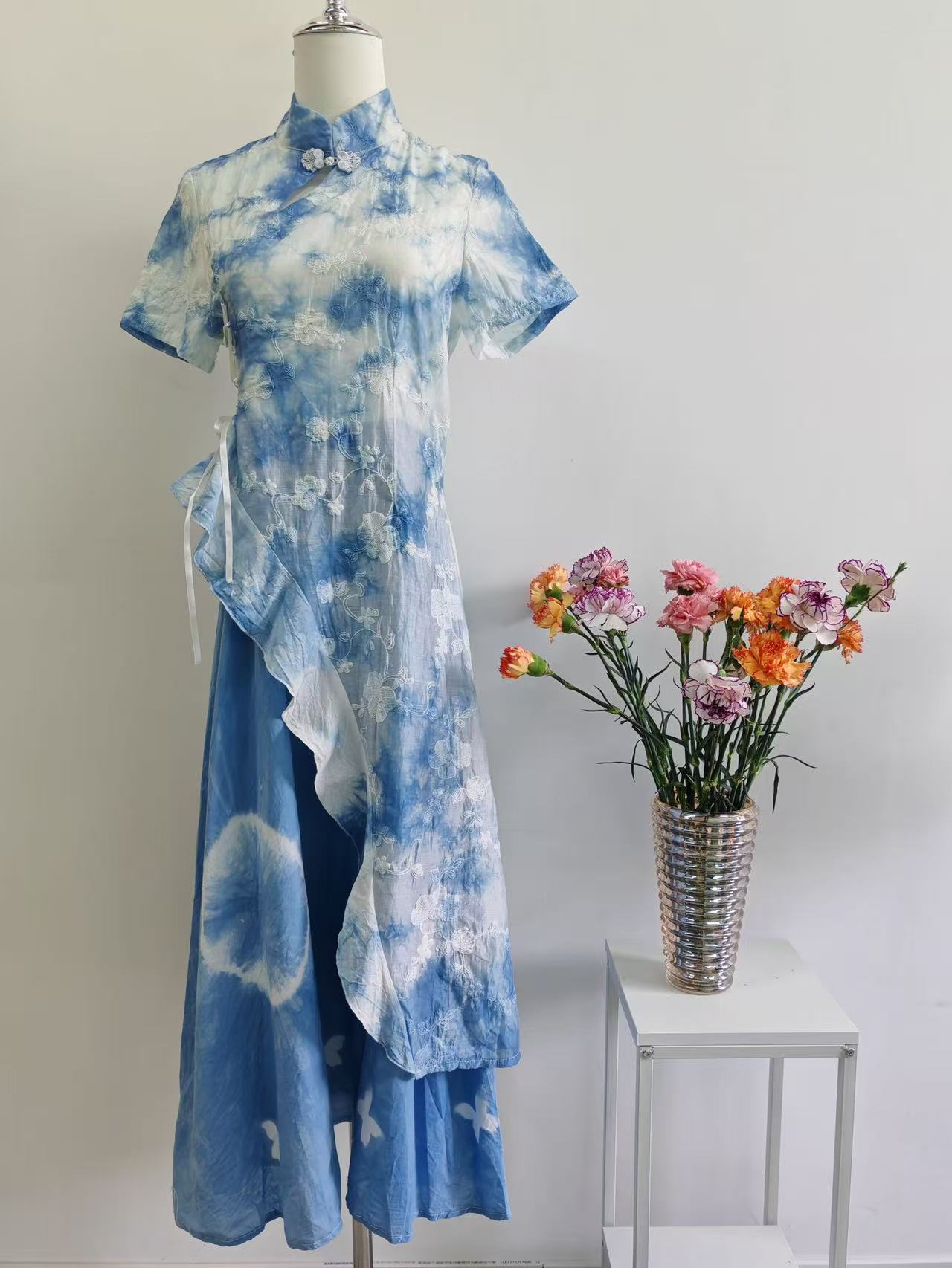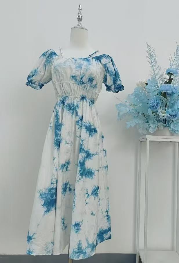 오리지널 순수 식물 이소라 수제 타이 염색 드레스 여성 여름 여성 롱 스커트 하이 엔드 스커트