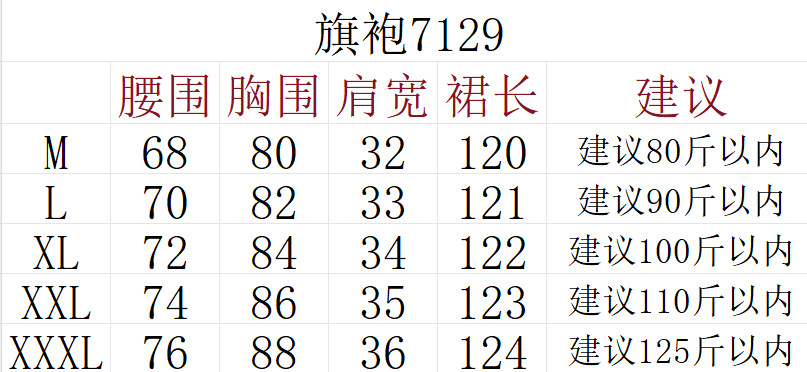 • 7129#치파오 2XL 사이즈 (52.5-57.5kg)