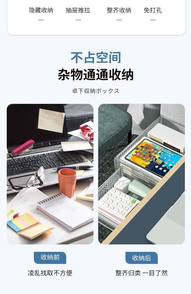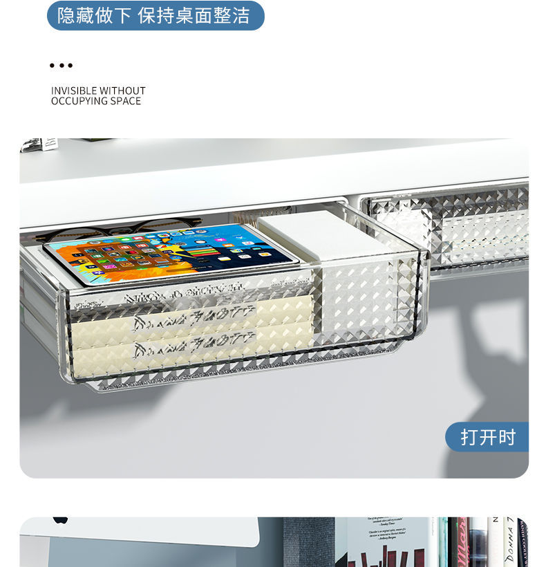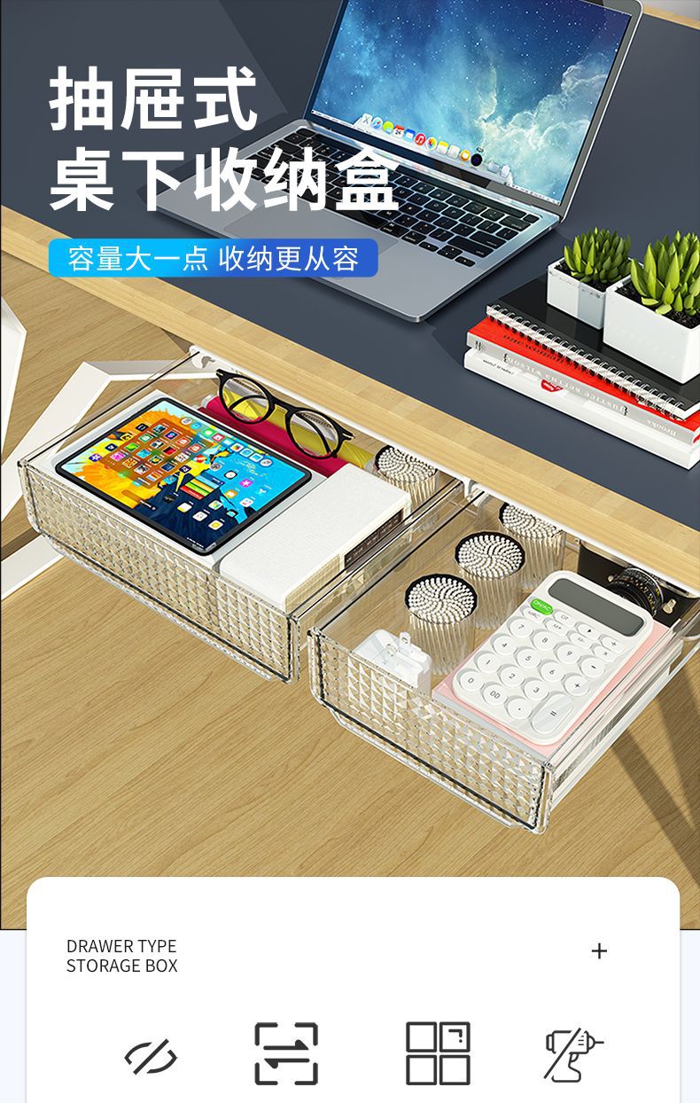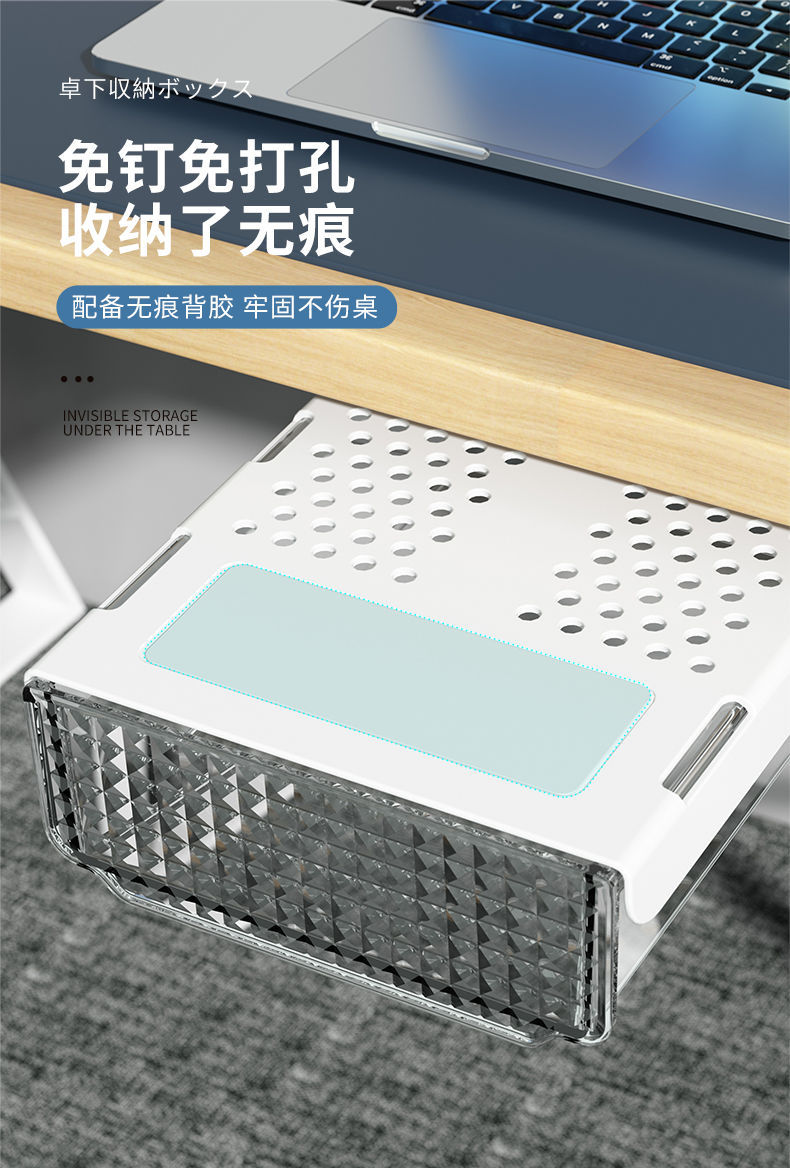 책상 아래에 보이지 않는 서랍형 수납함, 펀치 없는 사무실 책상 밑 문구류 투명 수납함, 숨겨진 유물
