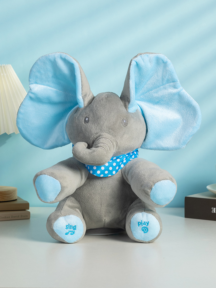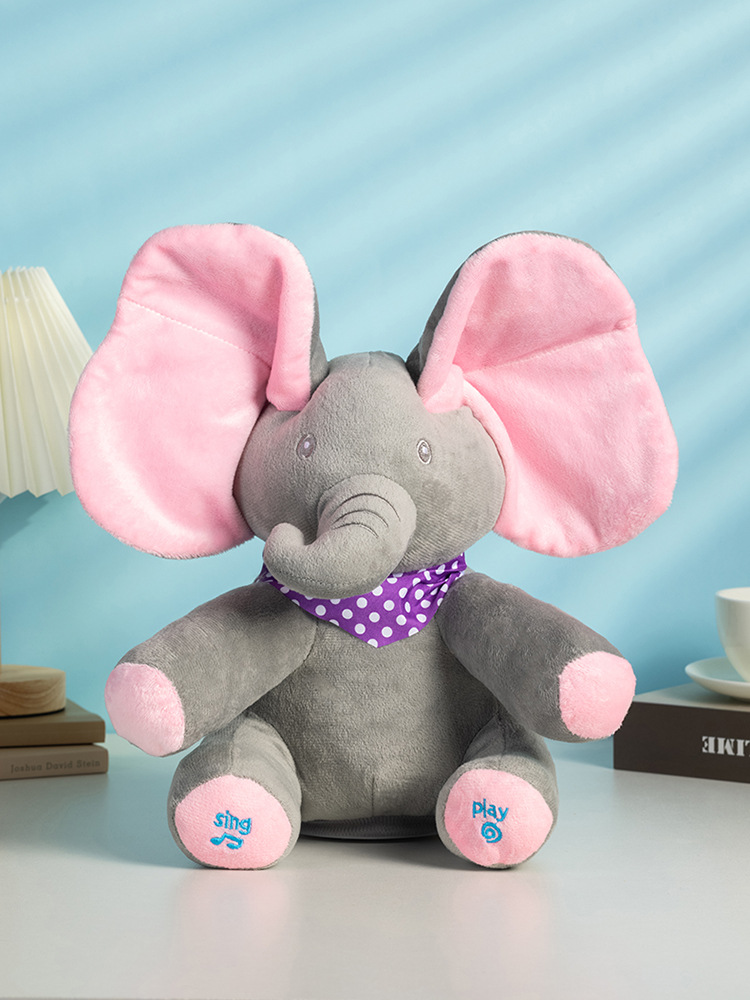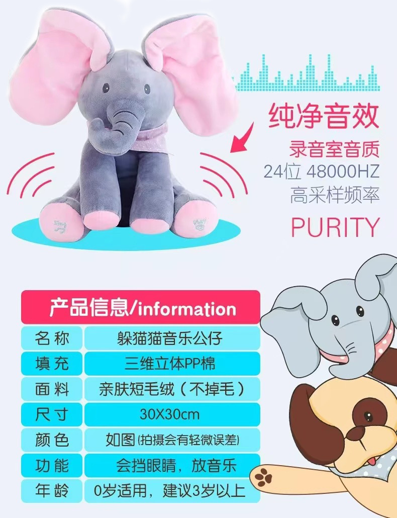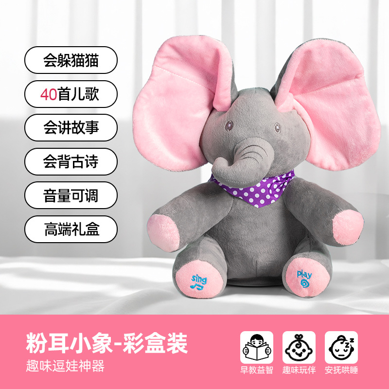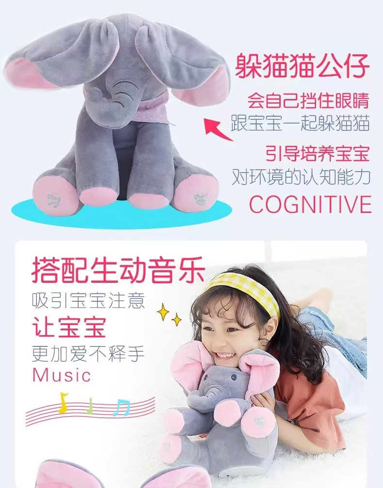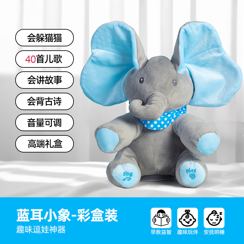국경 간 엿보기 코끼리 귀여운 매머드 아기 인형이 노래하고 눈을 가릴 수 있습니다 덤보 아기 진정 장난감스토어 가기