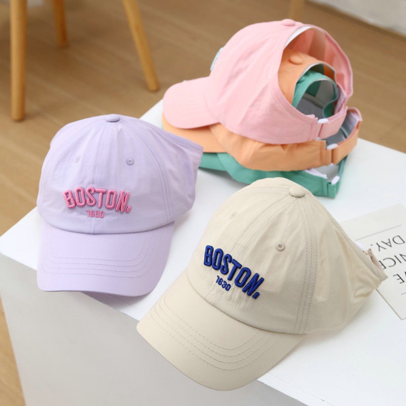 • 핑크 (BOSTON 속건) 포니테일로 묶을 수 있음 + 2-6세 참고 / 모자 둘레 49-52cm + 조절 가능