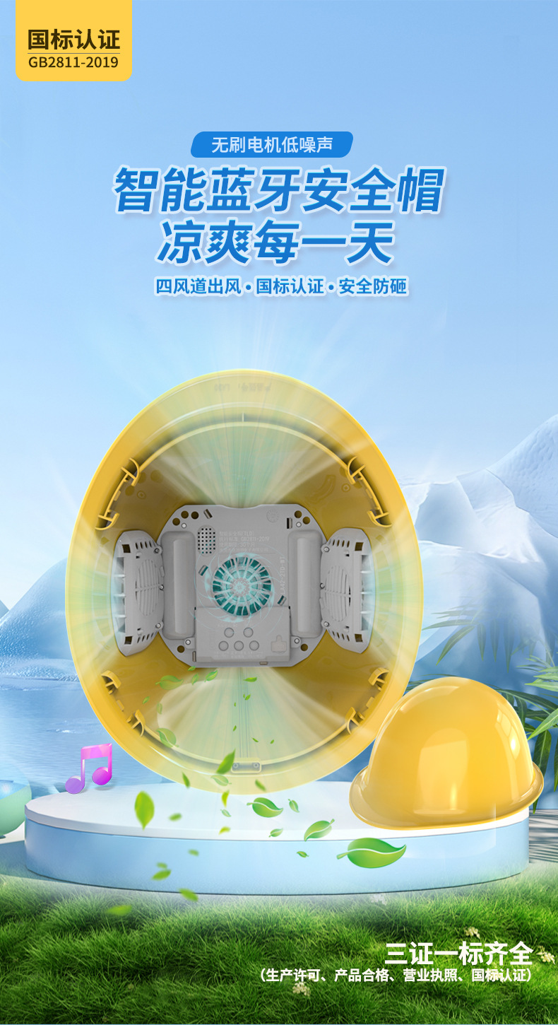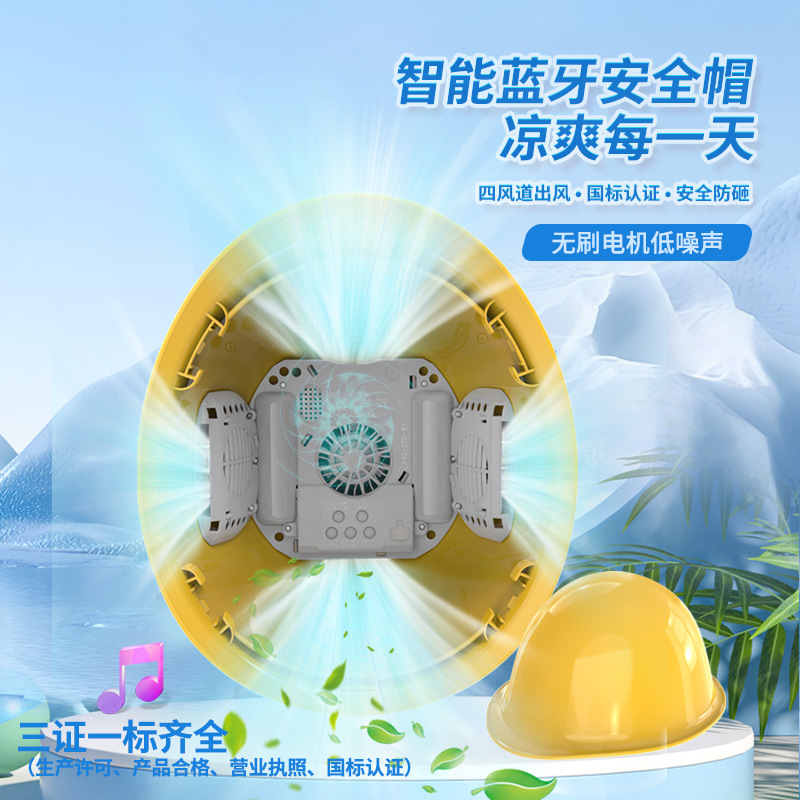 2025 새로운 GB 안전 모자 팬 충전식 에어컨 냉동 블루투스 라디오 사이트 야외 리더십 헬멧