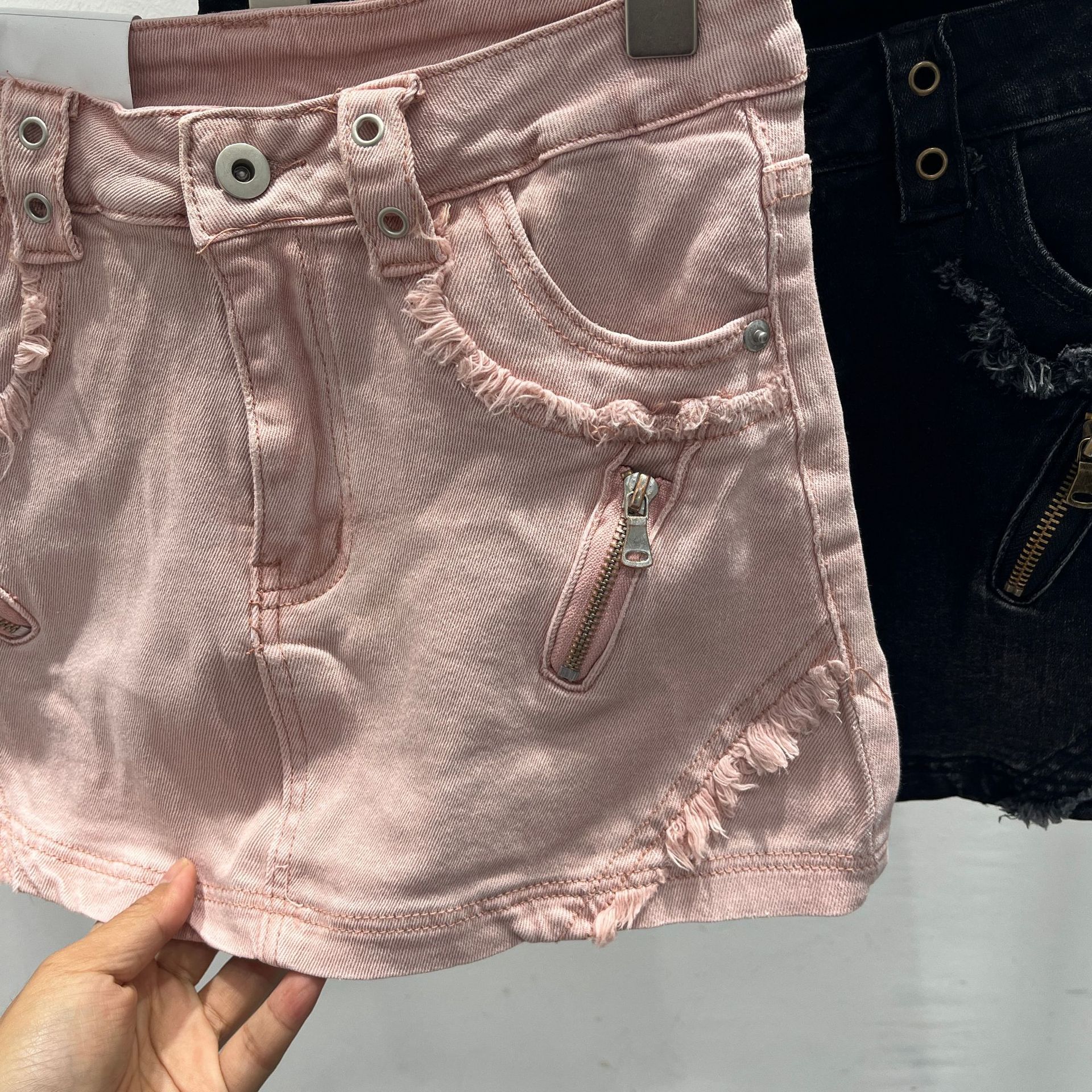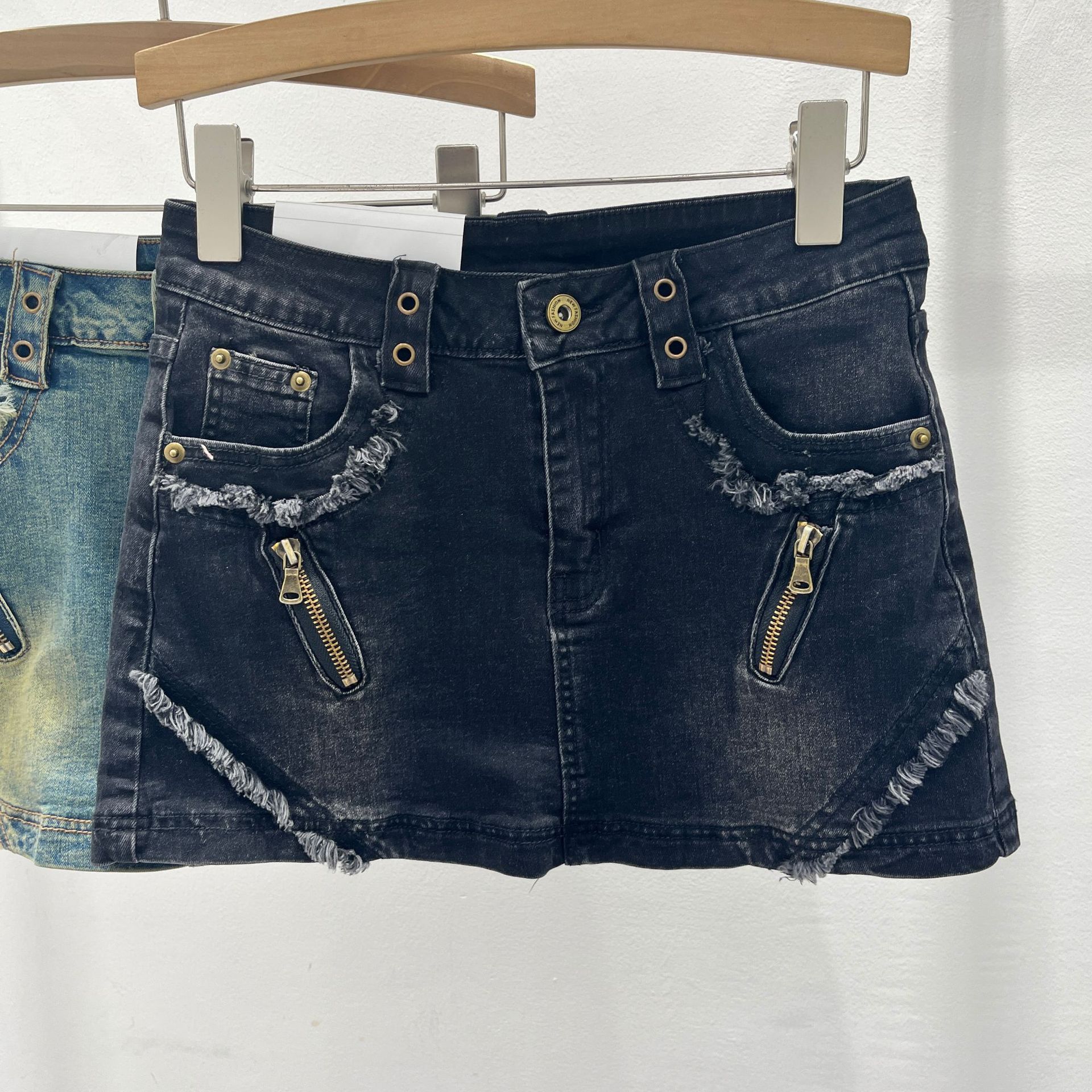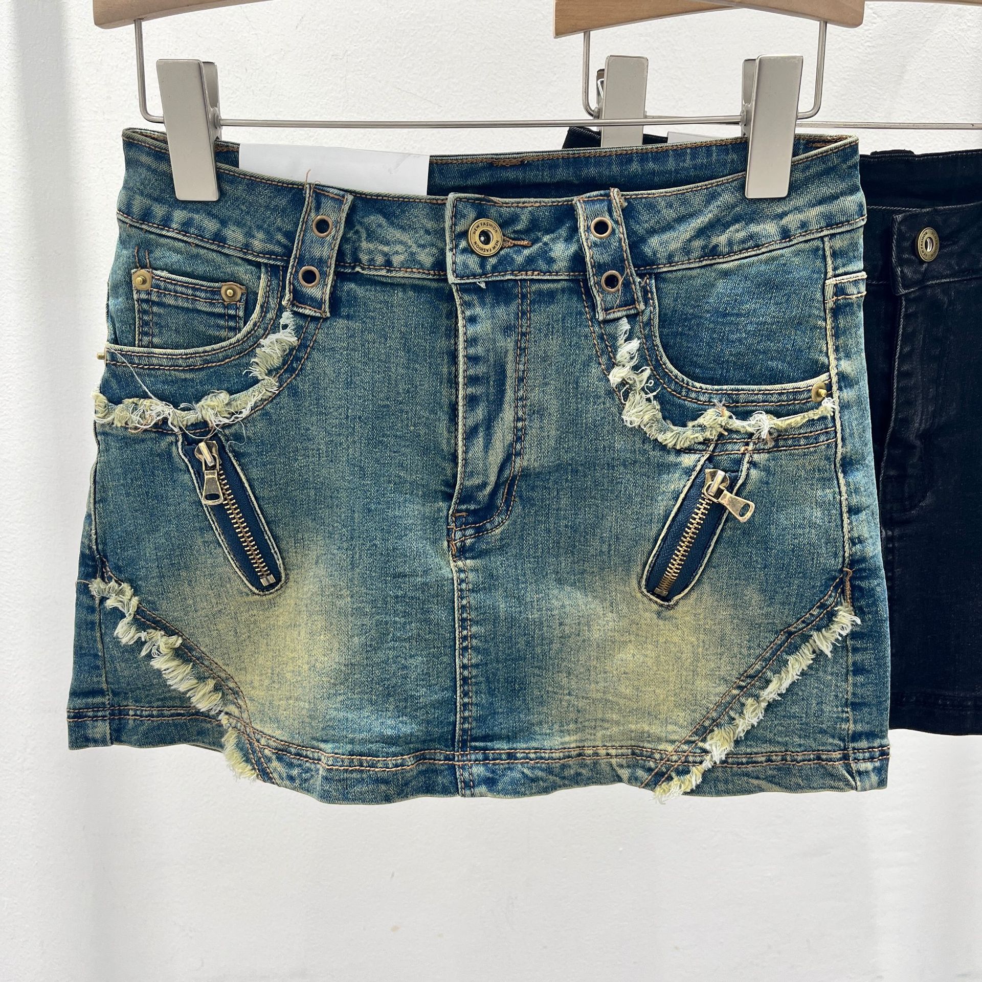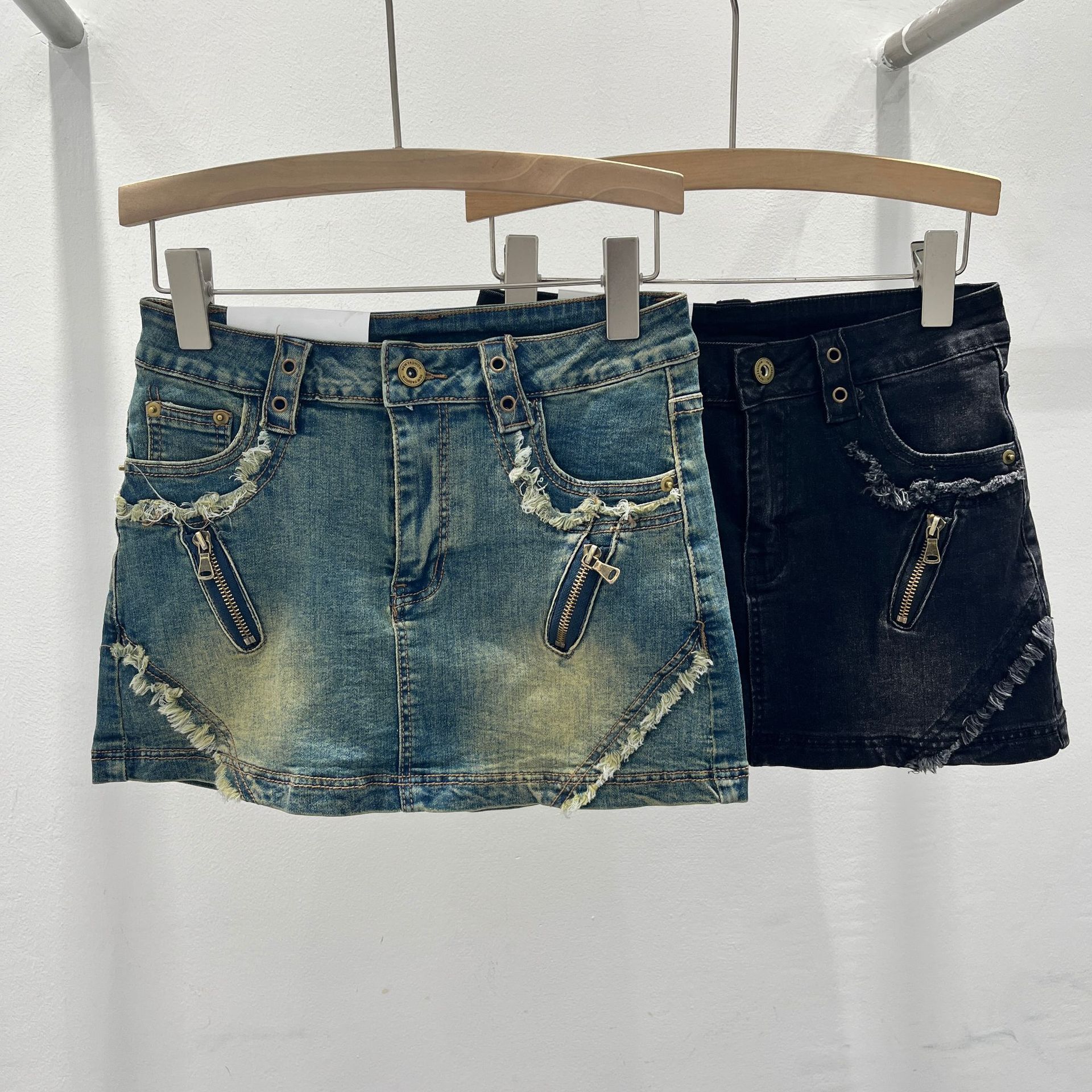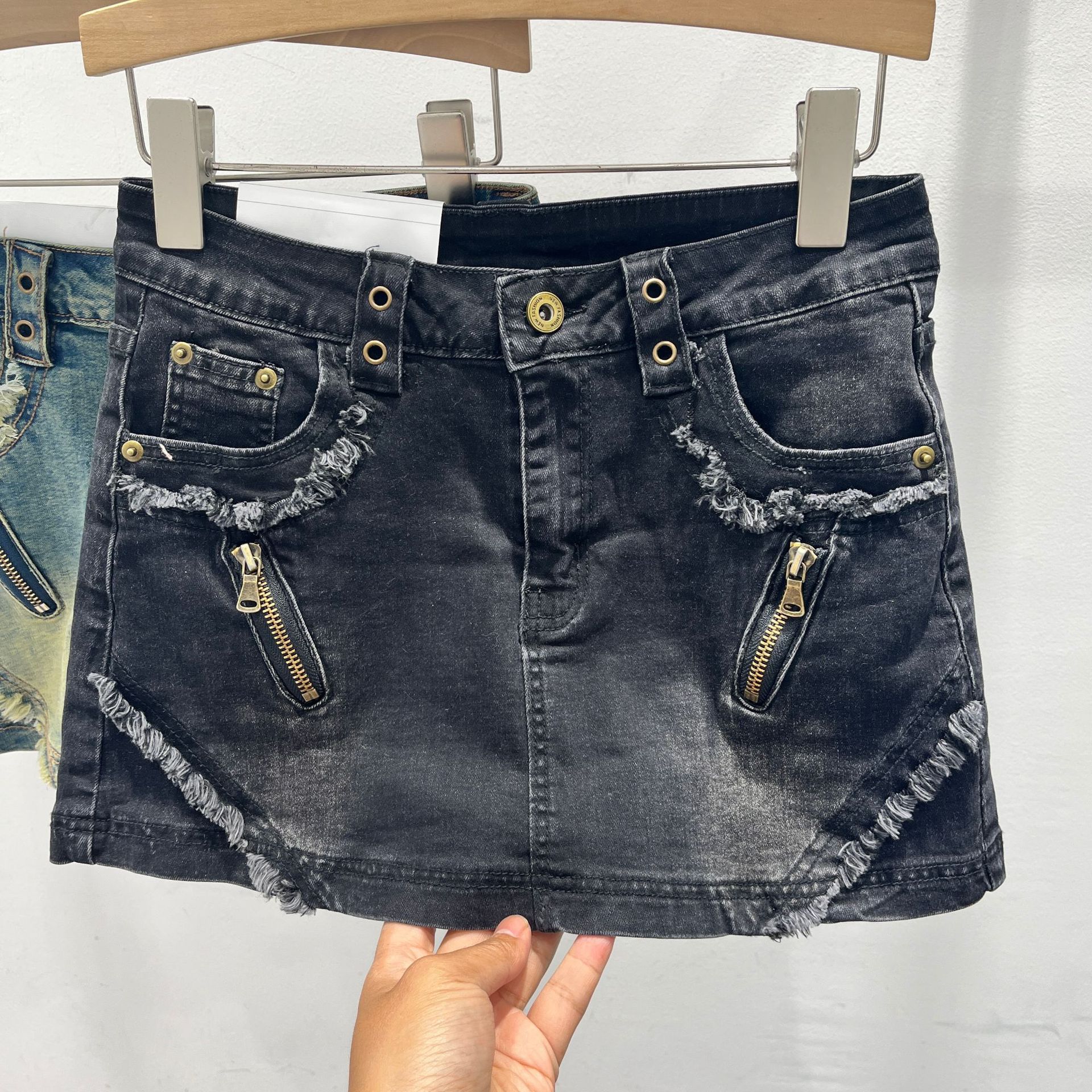 아메리칸 스타일 레트로 핫 걸 데님 스커트 여성 디자인 센스 틈새 지퍼 녹 중간 허리 A 라인 힙합 스커트스토어 가기